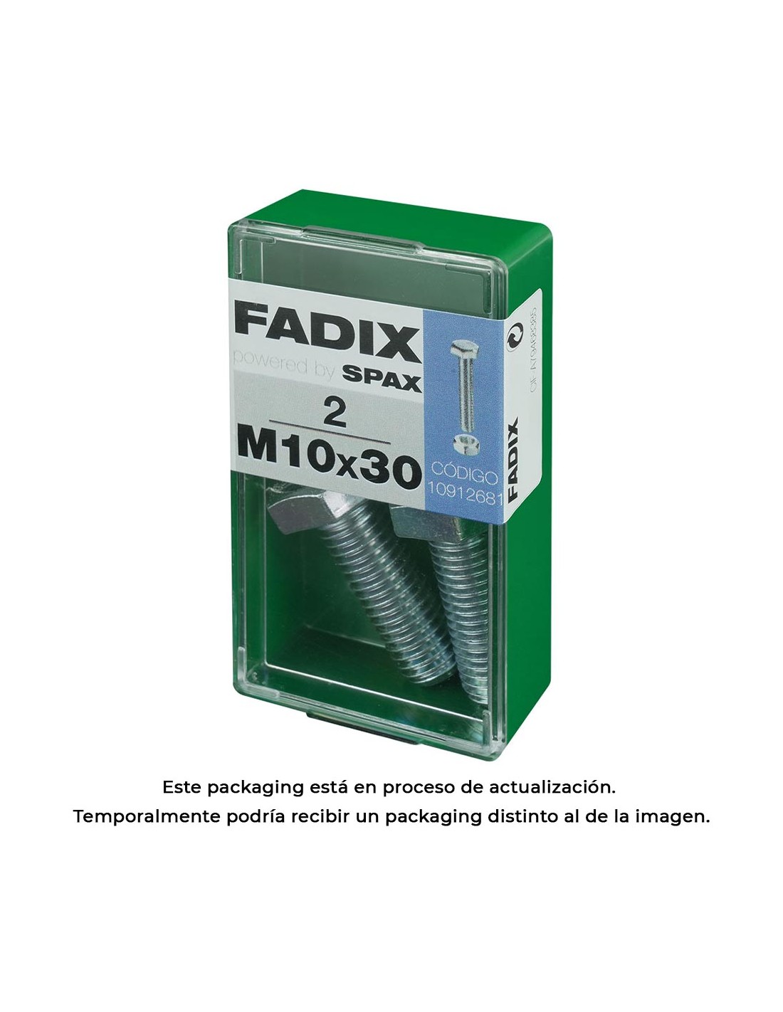 Caja s 2 unid. tornillo metrica cab hex+tuerca cinc m 10x30mm fadix