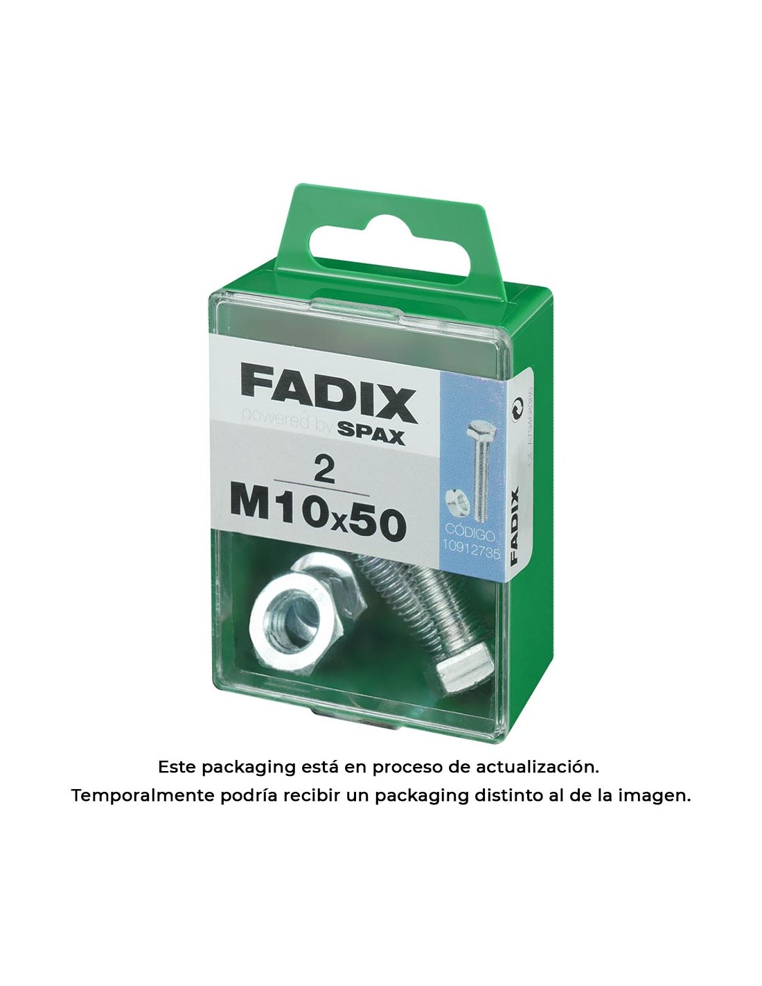 Caja m 2 unid. tornillo metrica cab hex+tuerca cinc m 10x50mm fadix