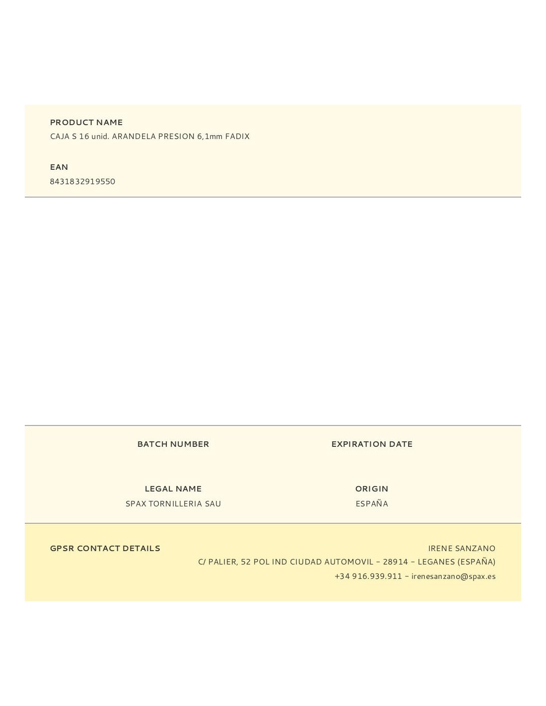 Caja s 16 unid. arandela presion 6,1mm fadix
