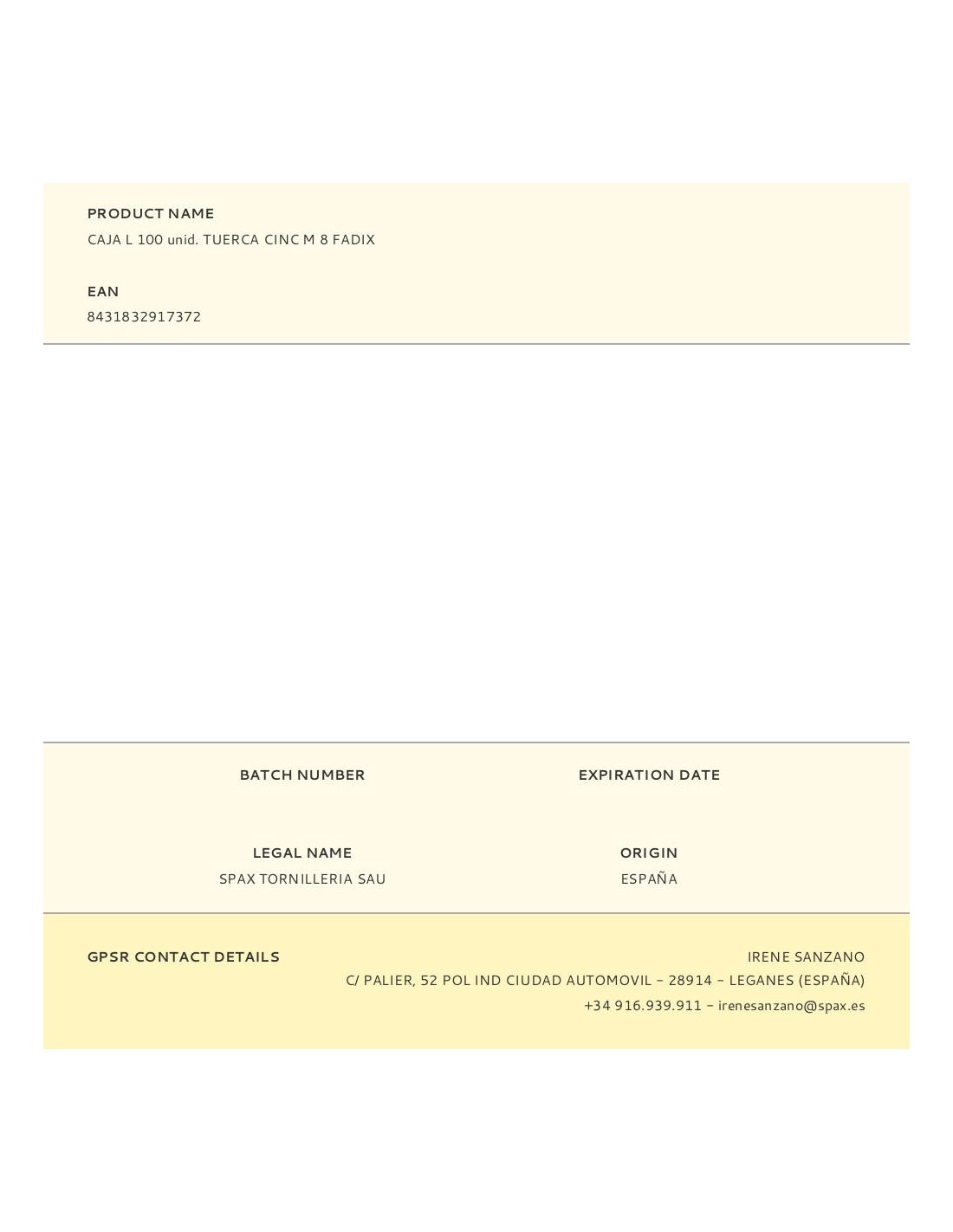 Caja l 100 unid. tuerca cinc m 8 fadix