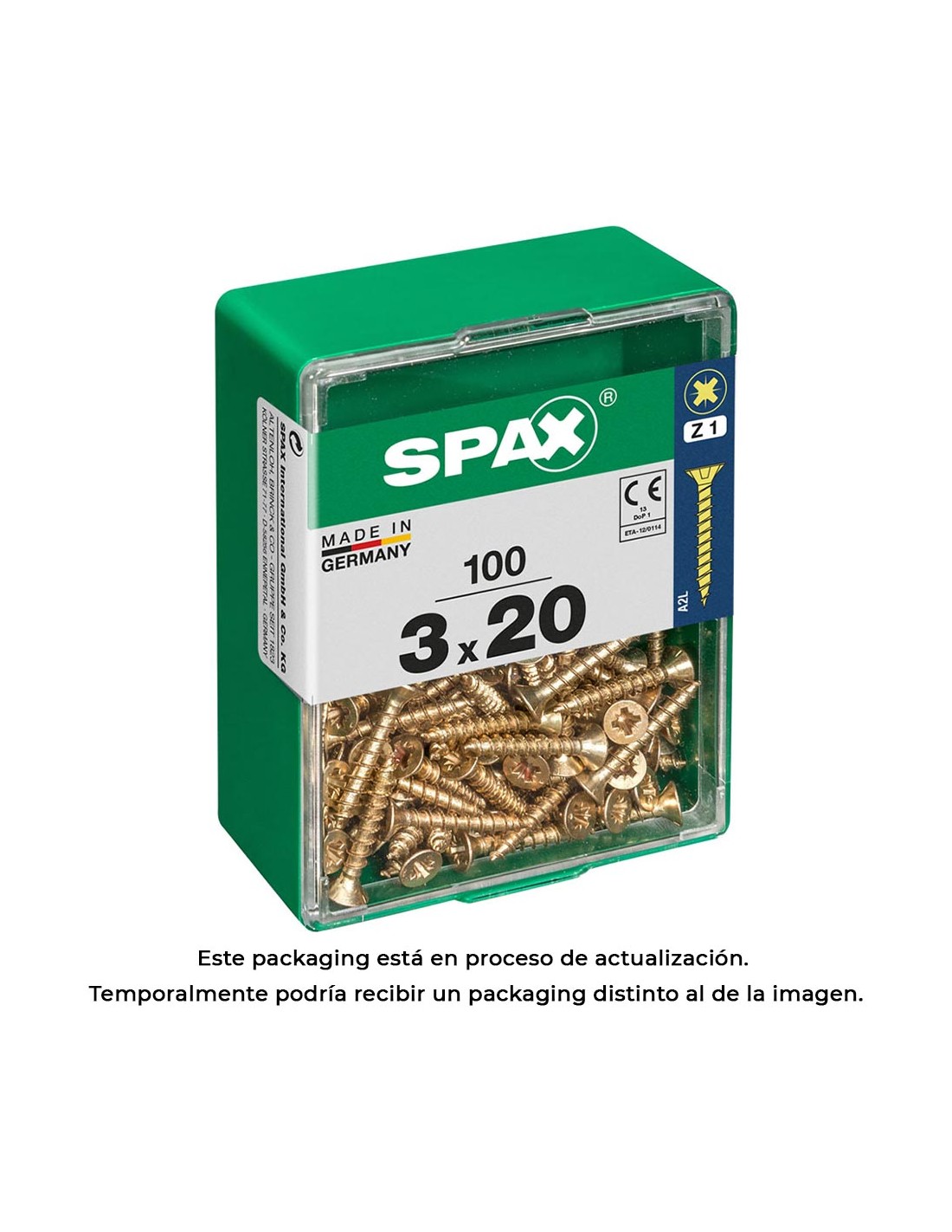 Caja 25 unid. tornillo madera spax cabeza plana inox a2 4,0x60mm spax