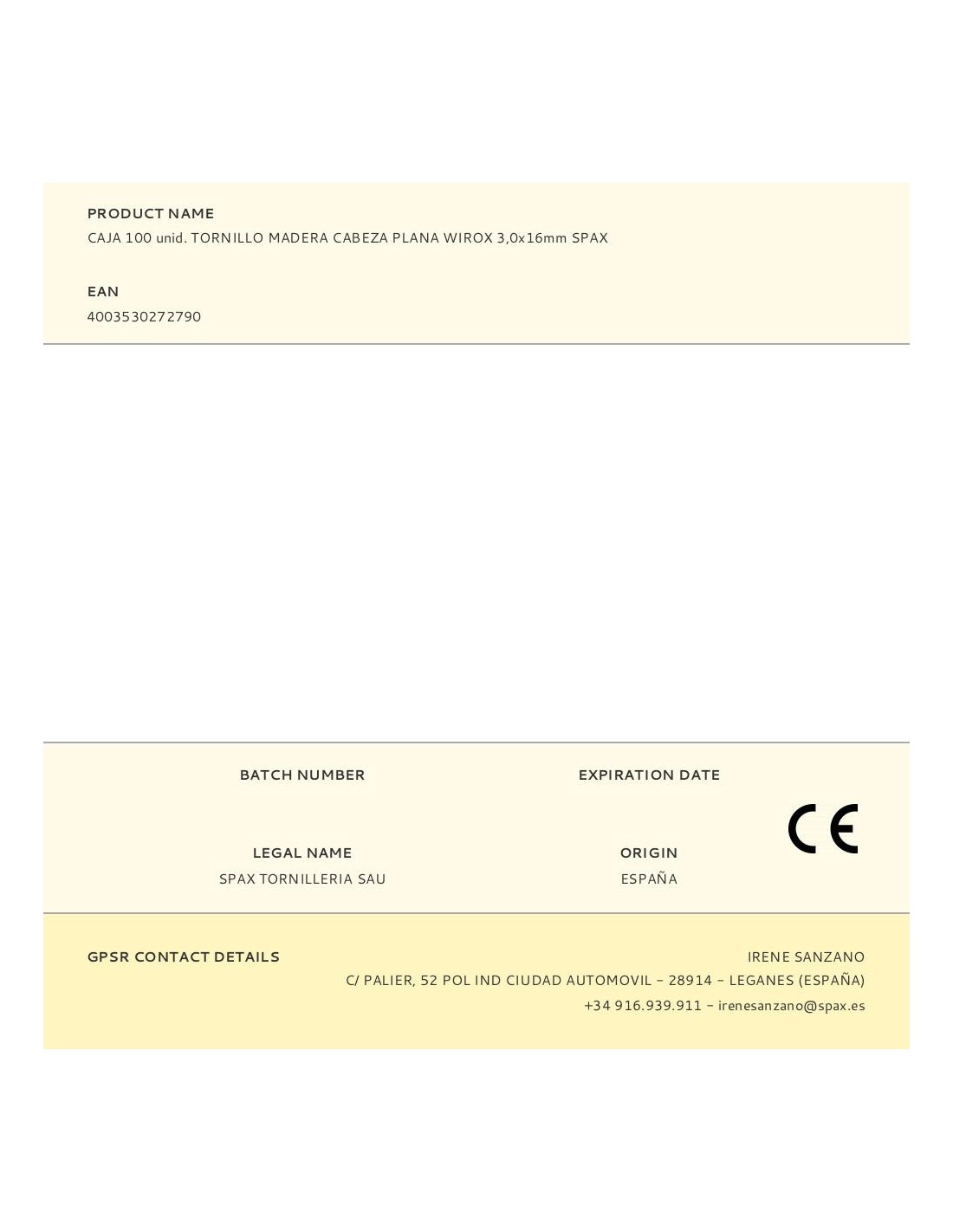 Caja 100 unid. tornillo madera cabeza plana wirox 3,0x16mm spax. sin necesidad de perforación previa (en función de la madera) mecanizado rápido y seguro con poco esfuerzo (mayor cantidad de atornillados con una carga de la batería) aplicación universalreduce de forma eficiente la rotura del material de madera, incluso con distancias reducidas de los bordes