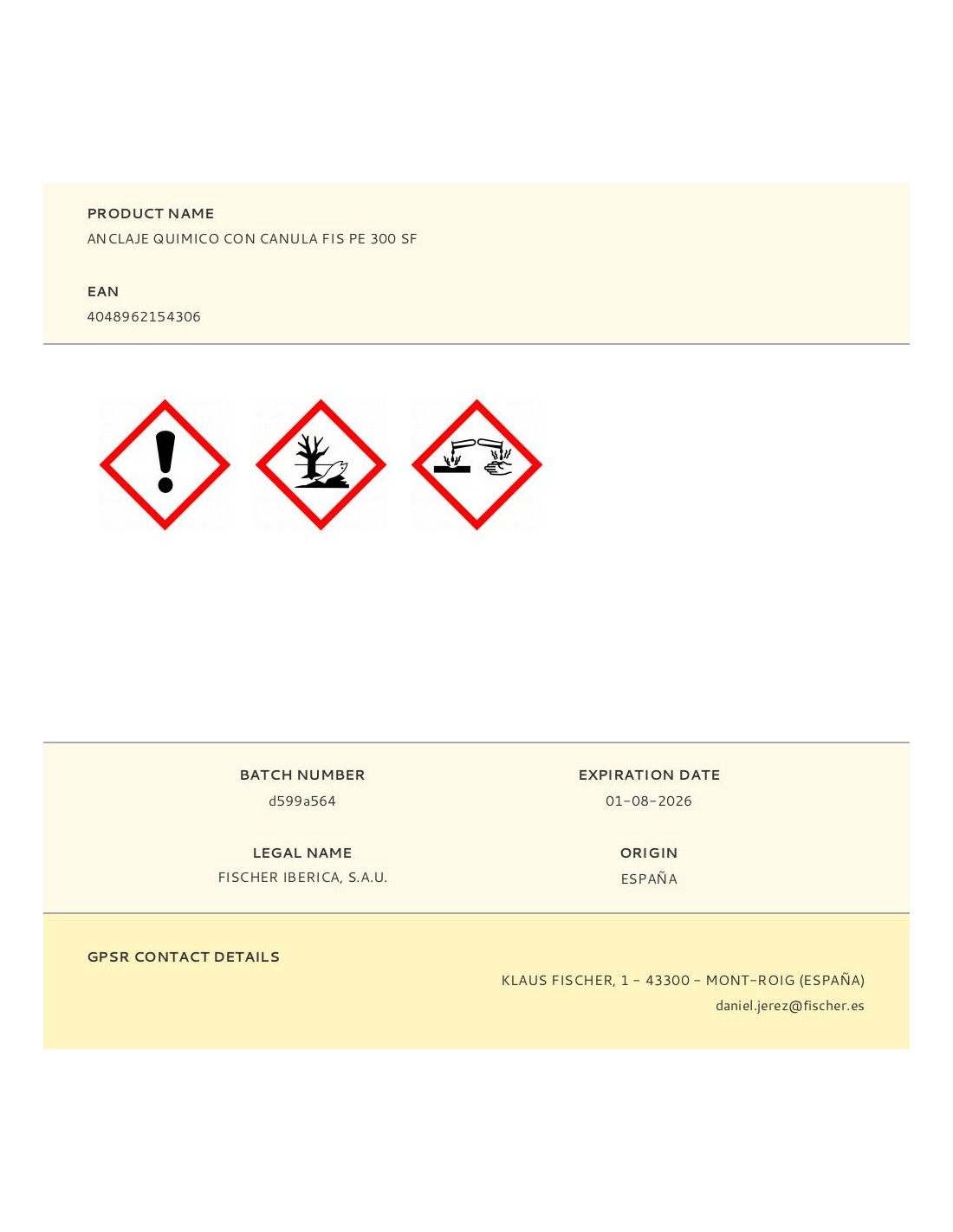 Taco quimico con canula fis pe 300 sf, resina poliester económico para fijaciones que no requieran homologación, fijación hormigon, ladrillo hueco 300 ml