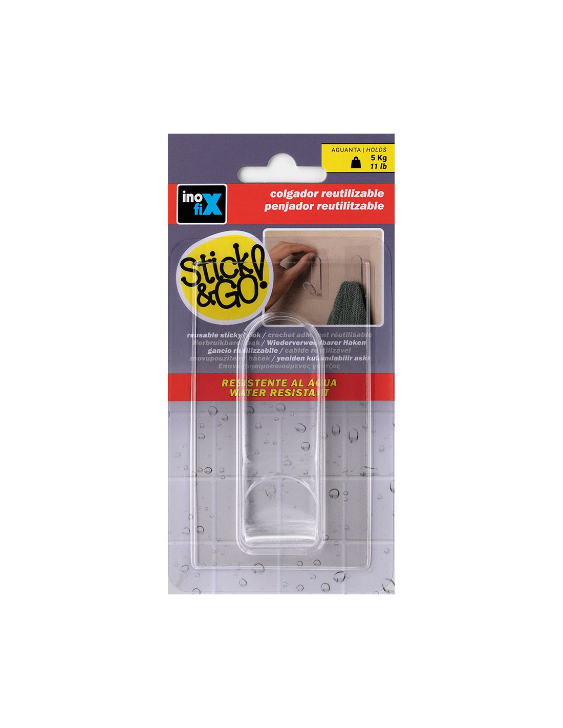 Colgador adherente reutilizable "j" transparente 1296-0 inofix. auto adherente y reutilizable. fijación por micro ventosas. peso max. 5kg