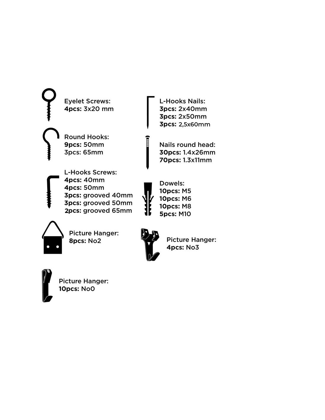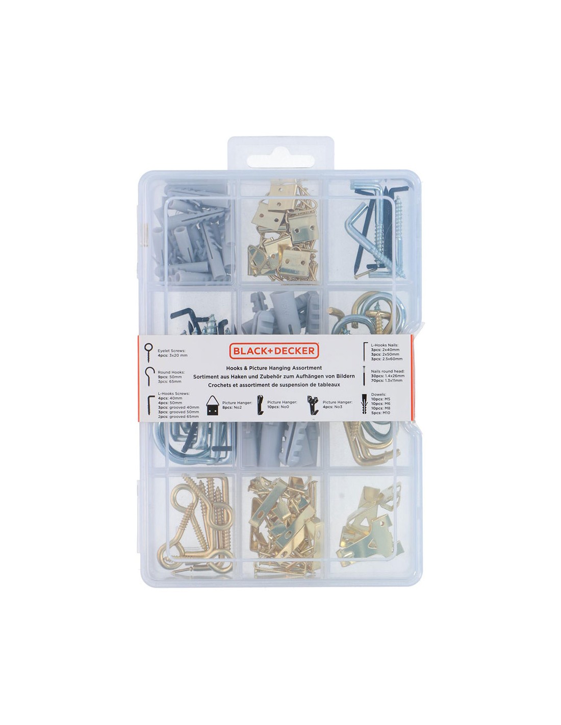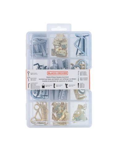 Surtido de alcayatas/hembrillas/ganchos y colgadores para cuadros 198 piezas st/pl black+decker