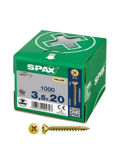Caja 1000 unid. tornillo madera avellanado pozi din/ref vlox ø3x15mm zincado+lubr. celo