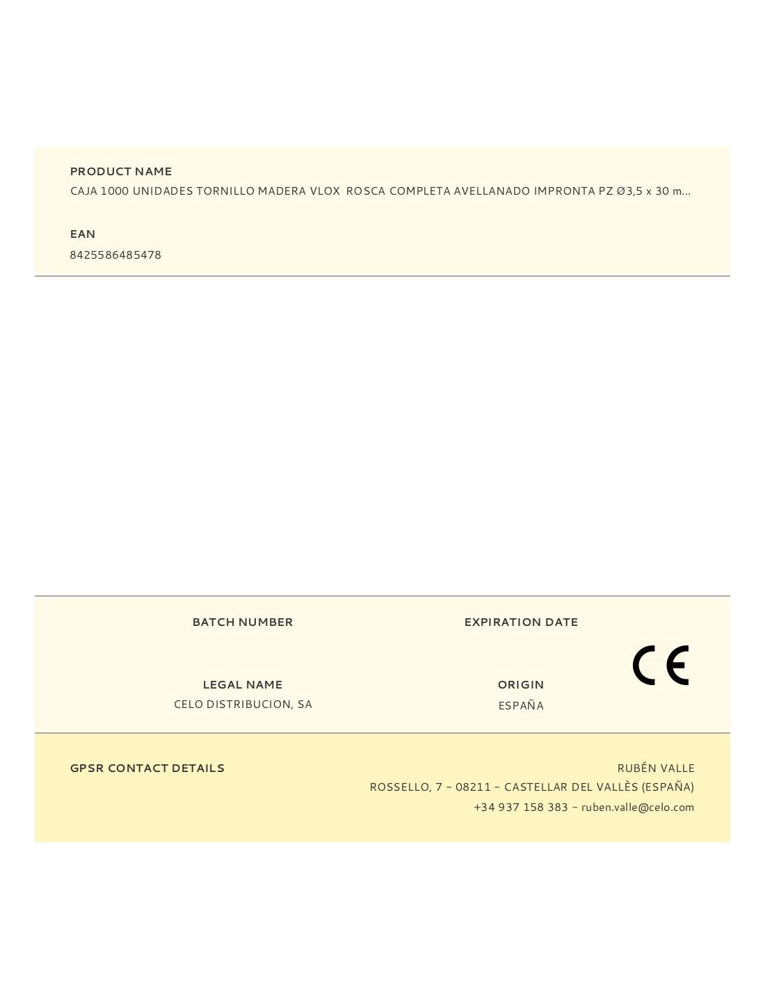 Caja 1000 unidades tornillo madera vlox rosca completa avellanado impronta pz ø3,5 x 30 mm bicromatado, 9b3530vlox