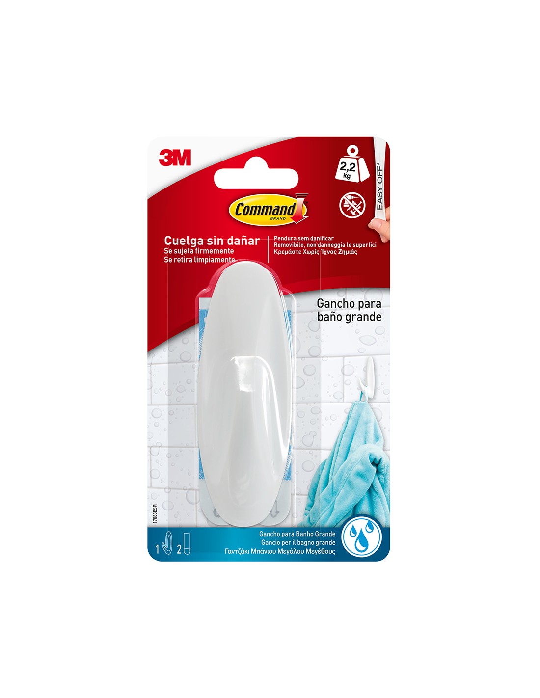 Gancho de diseño para baño, grande, 1 ud + 2 tiras, carga máxima 2,2 kg, 17083b
