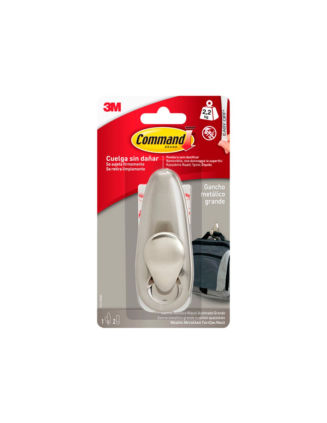 Gancho metálico, grande, níquel pulido, 1 ud + 2 tiras, fc13-bn, carga máxima 2,2 kg
