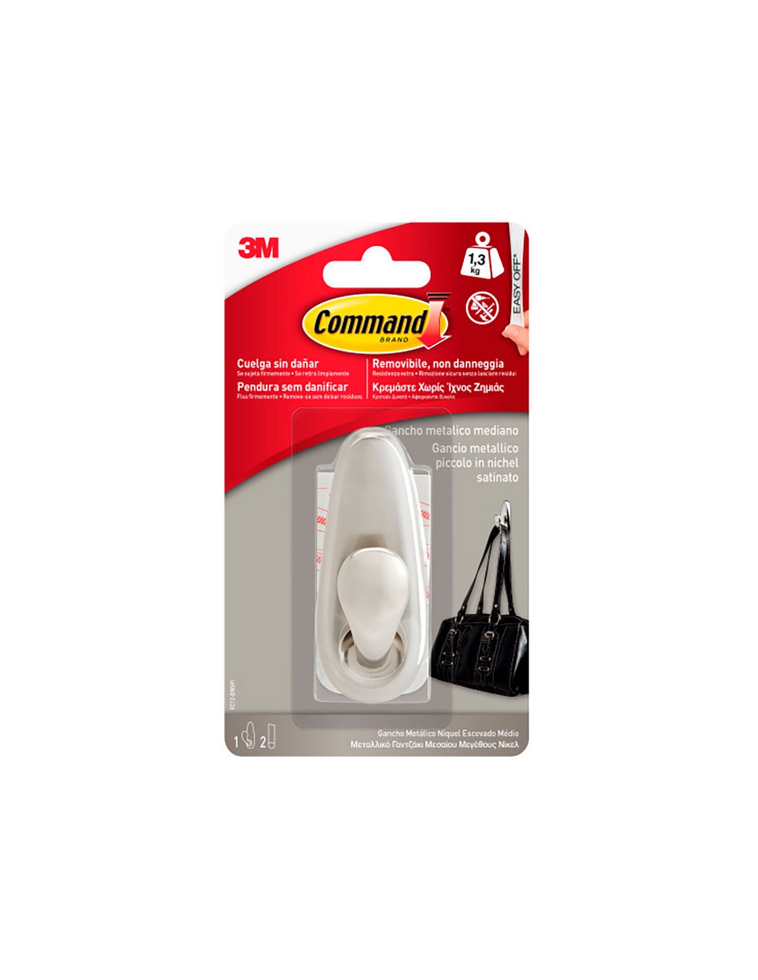 Gancho metálico, mediano, níquel pulido, 1 ud + 2 tiras, fc12-bn, carga máxima 1,3 kg