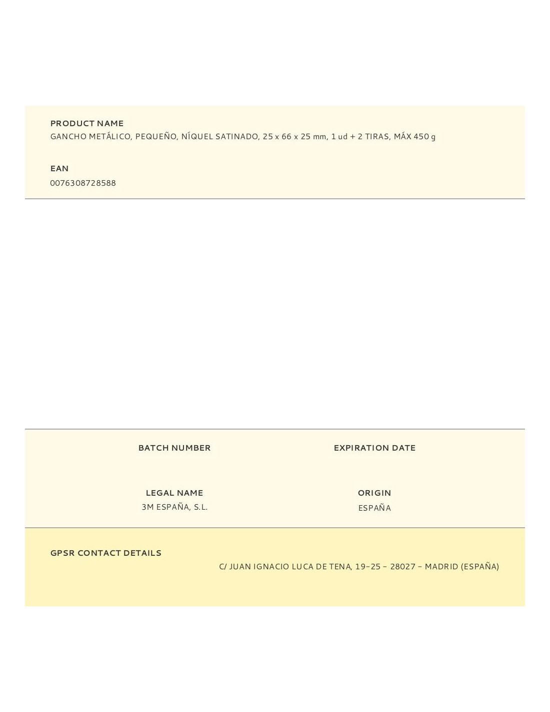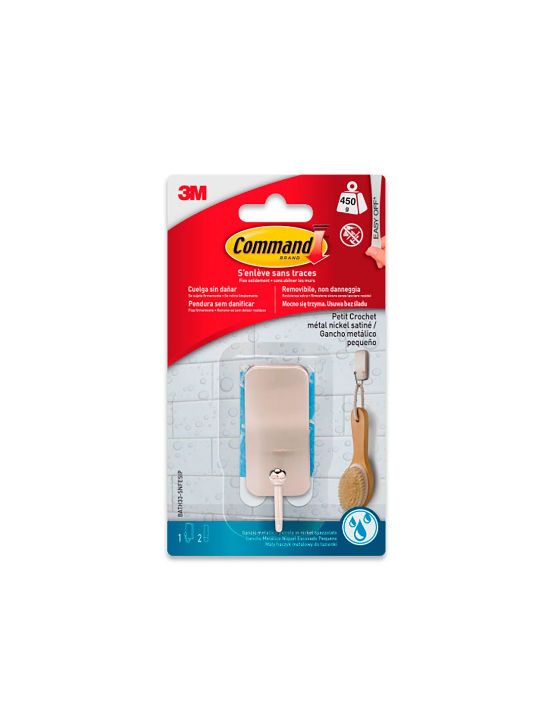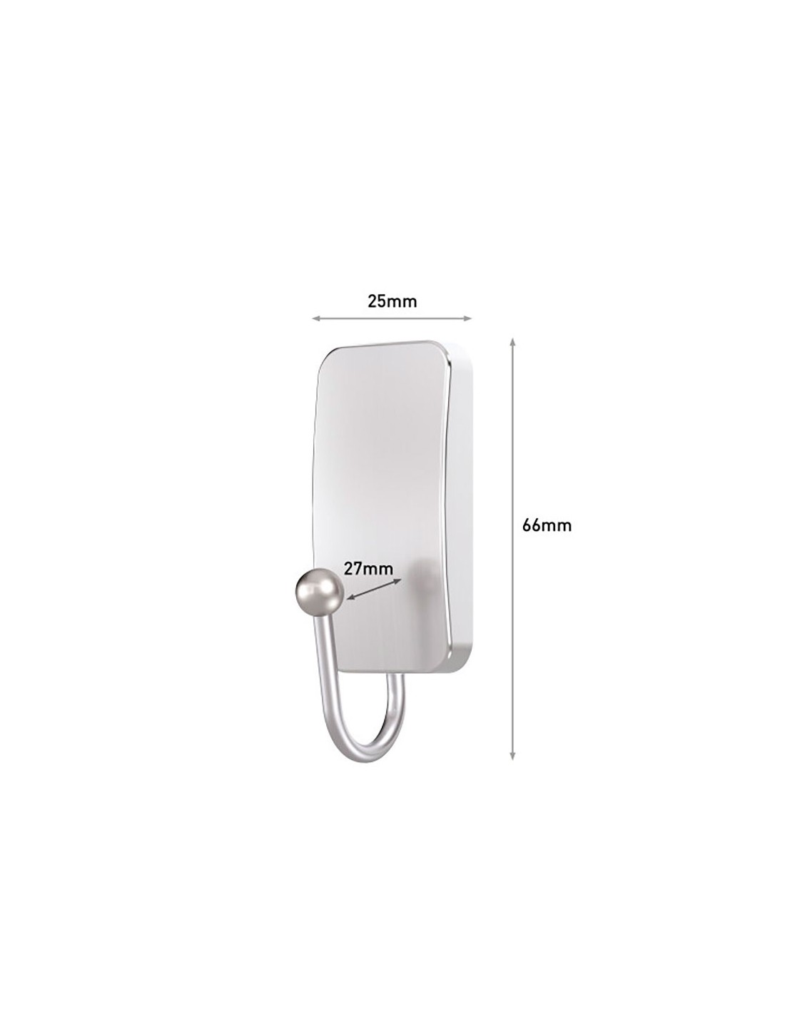 Gancho metálico, pequeño, níquel satinado, 25 x 66 x 25 mm, 1 ud + 2 tiras, máx 450 g, bath33-sn, carga máxima 450 g