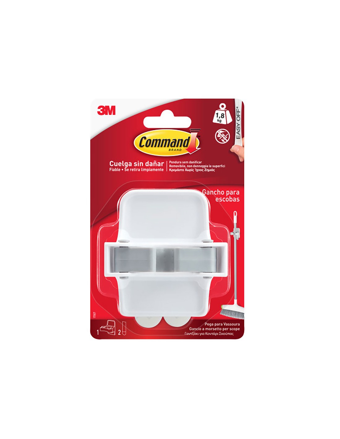 Gancho para escobas, 1 ud + 2 tiras, 17007, carga máxima 1,8 kg