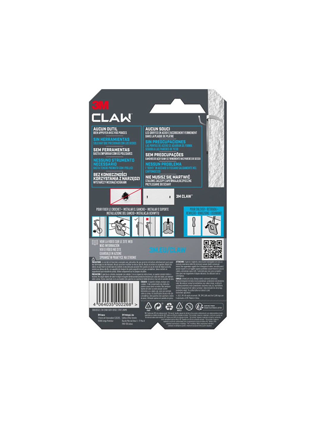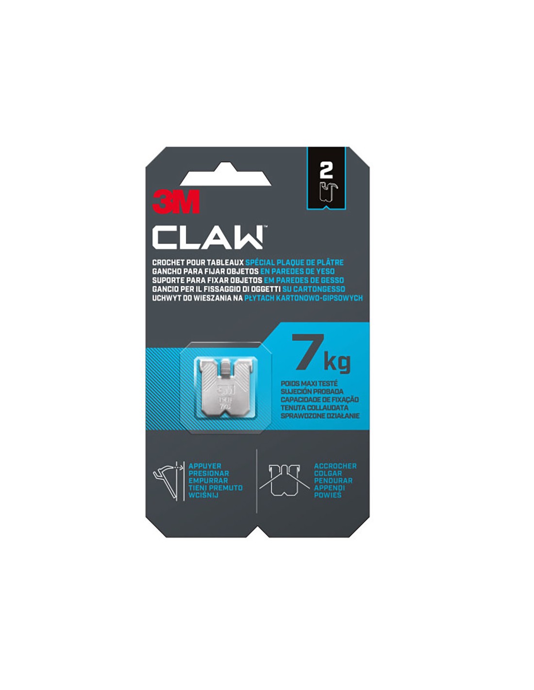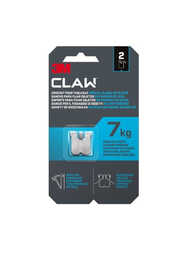 Gancho para paredes de yeso, carga máxima 7 kg, 23 x 23 x 4 mm, 2 uds, 3ph7-2wmr