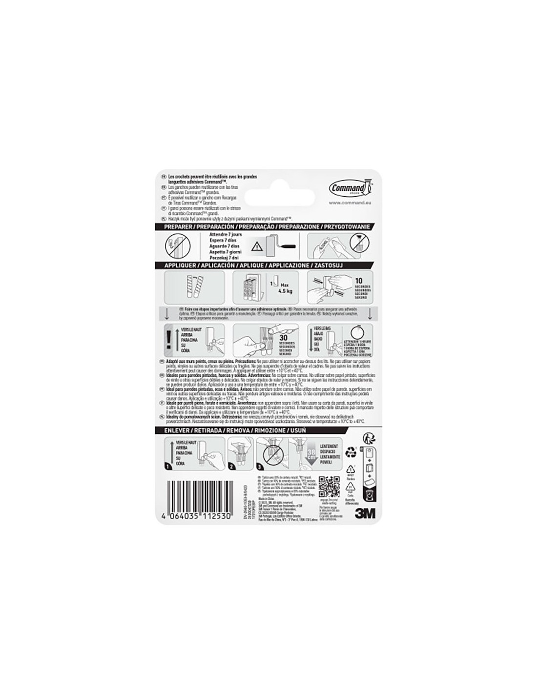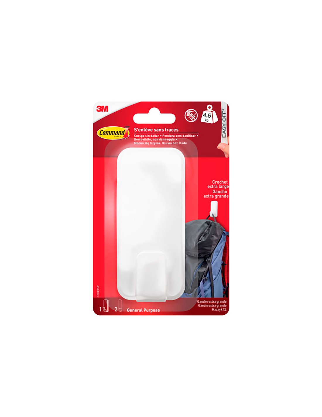Gancho para utensilios, extragrande, blanco, 1 ud + 2 tiras, carga máxima 4,5 kg, 17010fesip