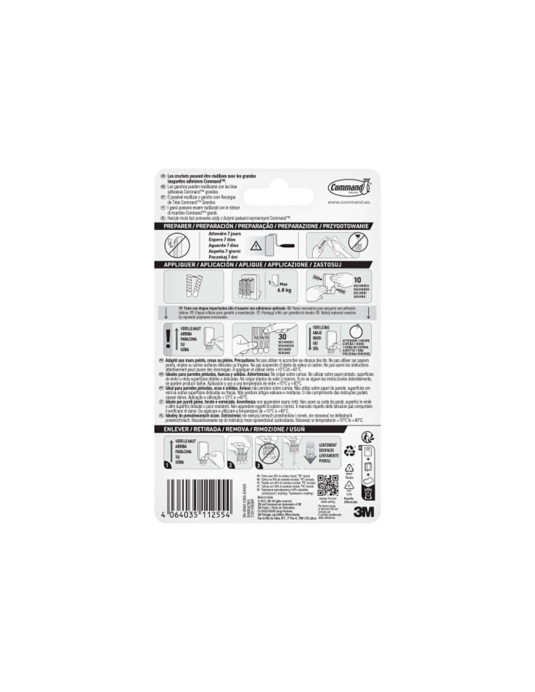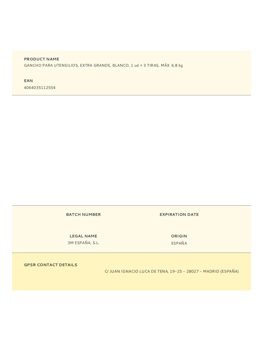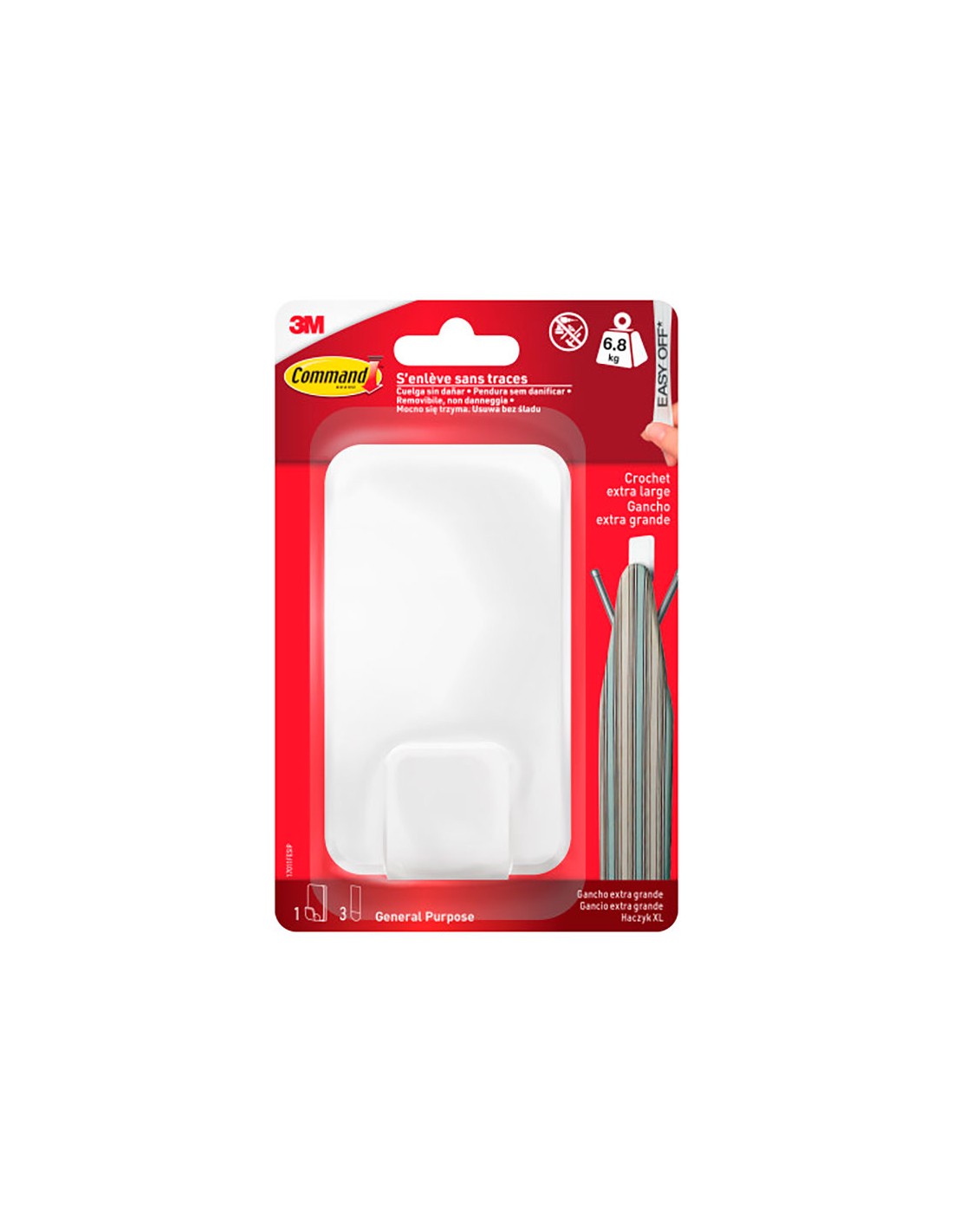Gancho para utiensilios, extra grande, blanco, 1 ud + 3 tiras, carga máxima 6,8 kg, 17011fesip