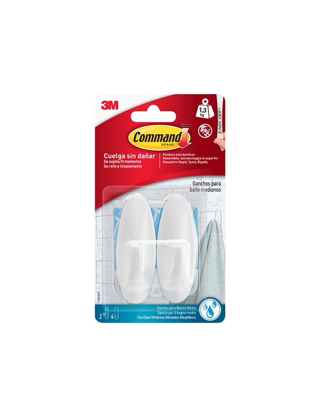 Gancho blanco, mediano, 29 x 79 x 29 mm, 2 uds + 4 tiras, 17081b, carga máxima 1,3 kg