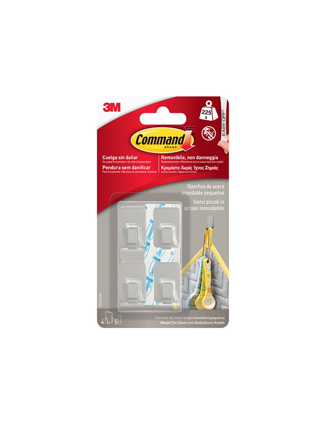 Gancho de acero inoxidable, pequeño, 19 x 30 x 15 mm, 4 uds + 5 tiras, carga máxima 225 gr, 17031ss-4