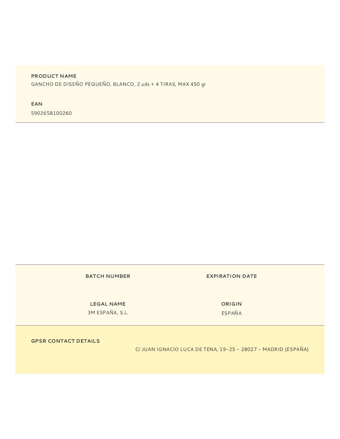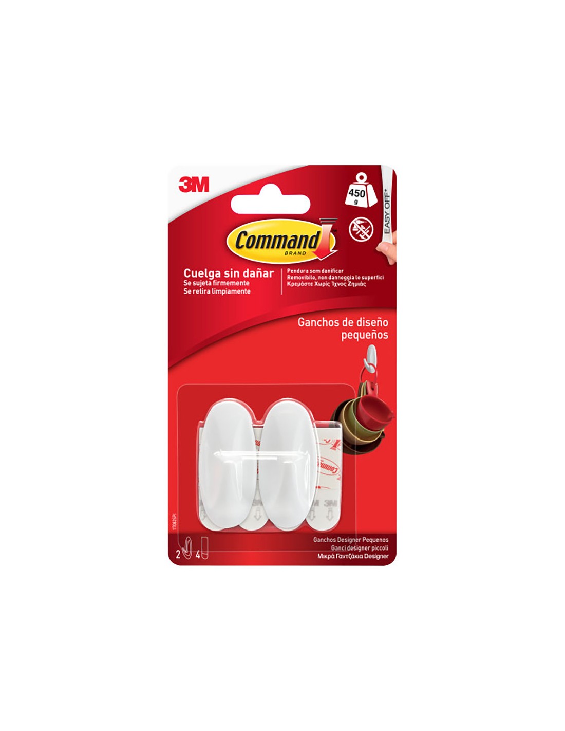 Gancho de diseño, pequeño, blanco, 2 uds + 4 tiras, 17082, carga máxima 450 gr