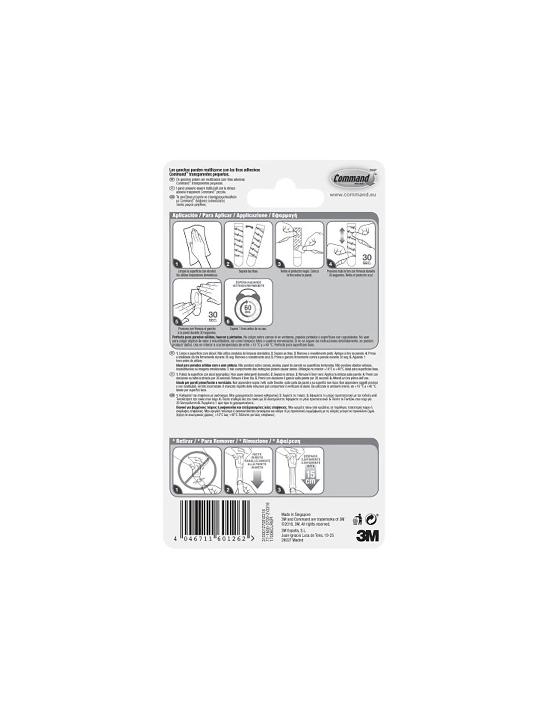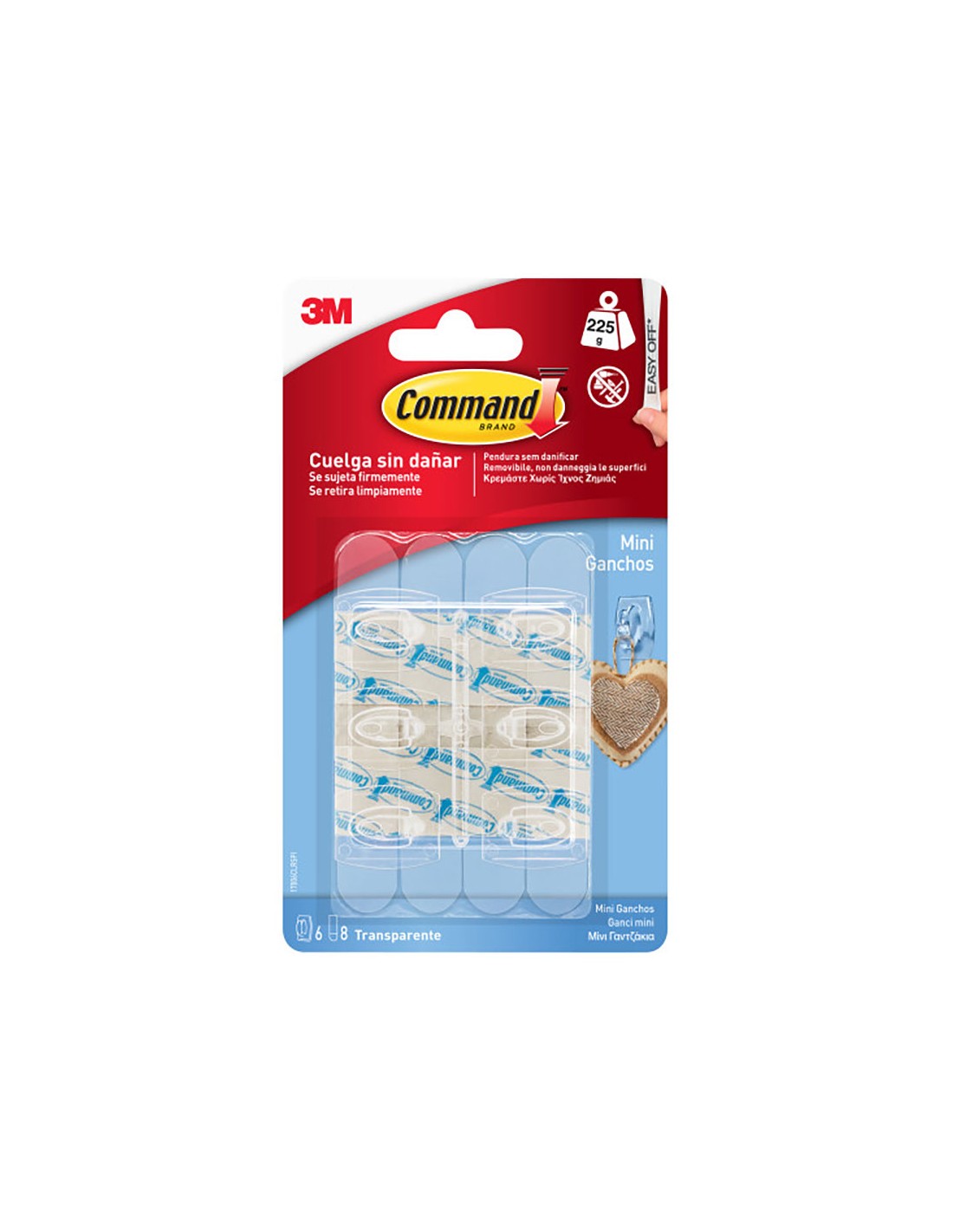 Mini ganchos, transparentes, 22 x 29 x 11 mm, 6 uds + 8 tiras, 17006clr, carga máxima 225 g