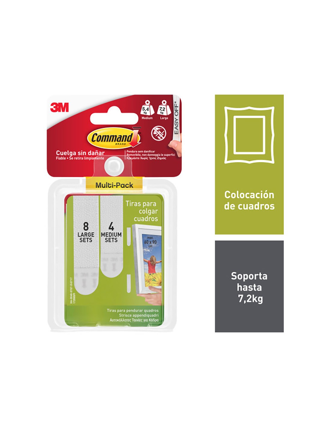 Tiras para colgar cuadros 17209, multipack de 8 pares de tiras grandes (carga máxima 7,2 kg) y 4 pares de tiras medianas (carga máxima 5,4 kg)