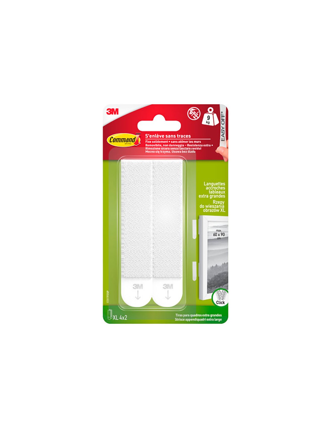 Tiras para colgar cuadros 17217fesip. contiene 4 pares de tiras extragrandes con carga máxima 9 kg
