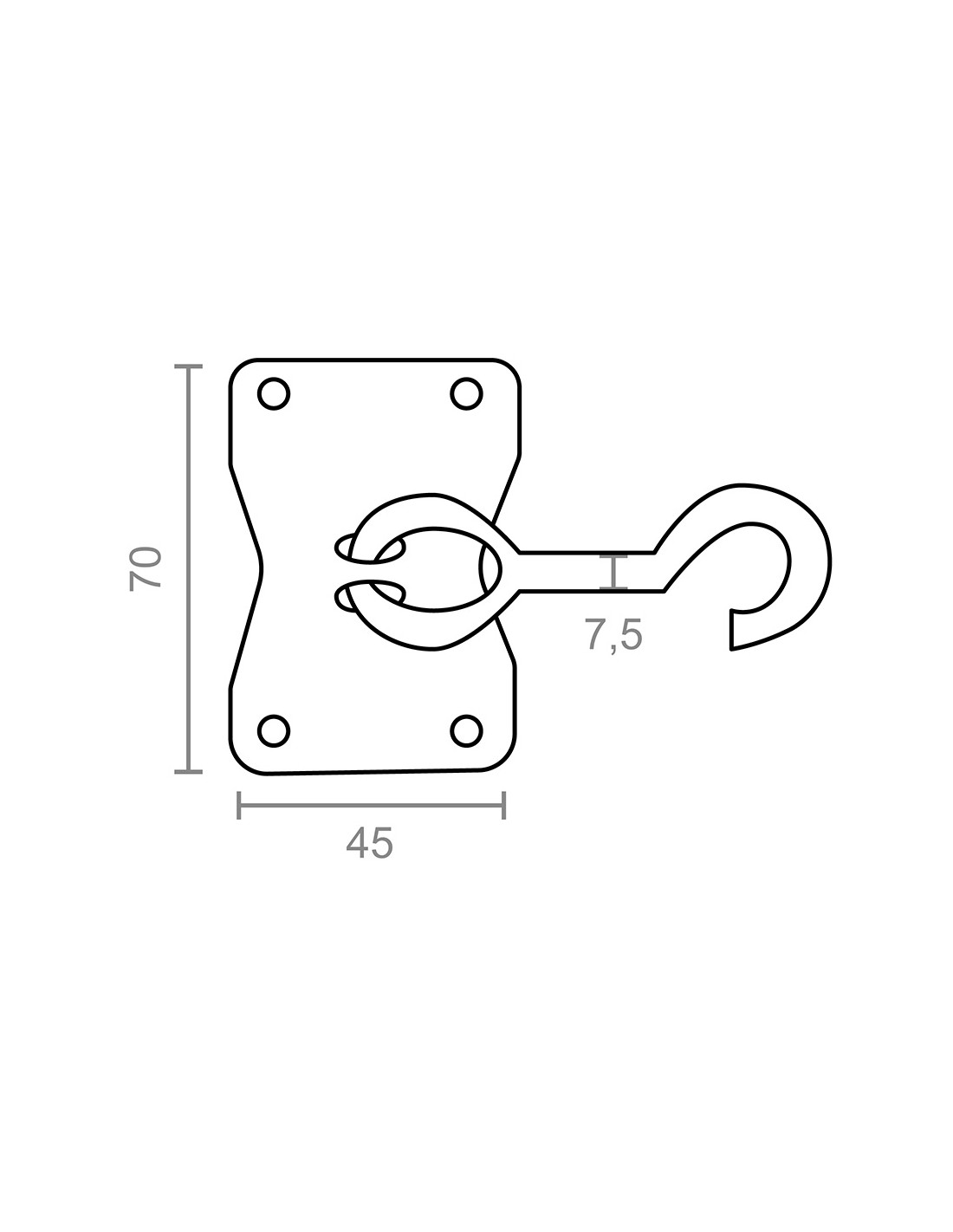 Gancho movil con placa en acero de 70 x 45 mm. acabado zincado. formato blister
