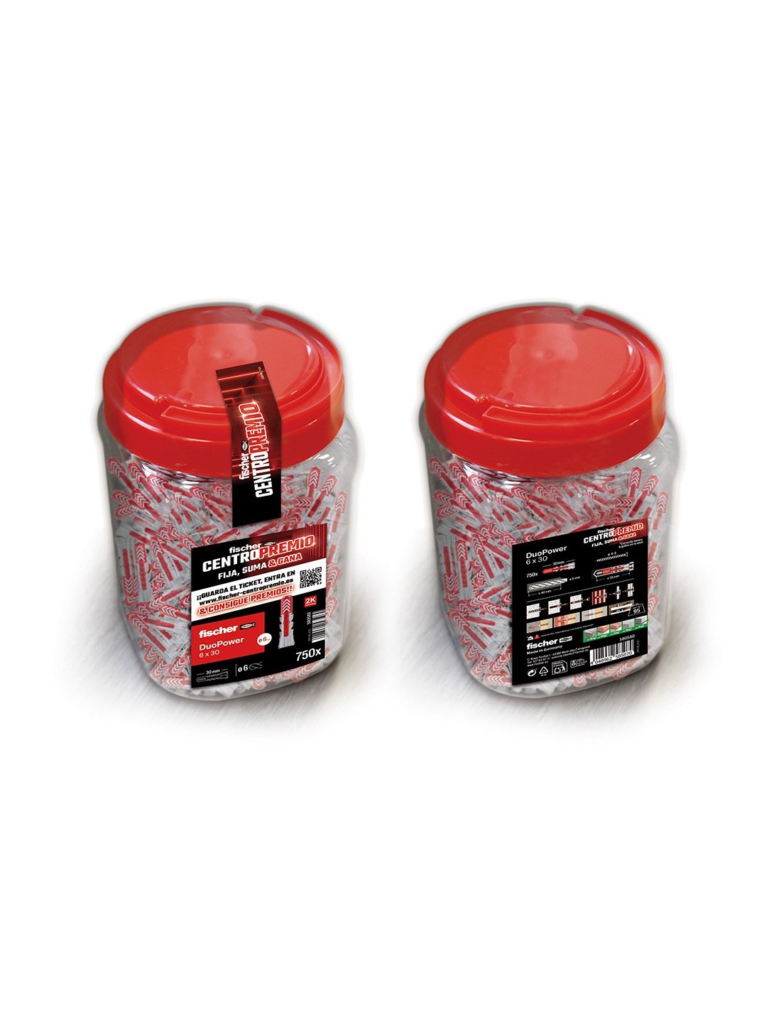 Big box de tacos duopower. taco universal 6 x 30 mm de nueva generación con tecnología 2k, que combina fuerza y adaptabilidad para una fijación segura en todo tipo de materiales, apto para hormigón, ladrillo macizo, ladrillo hueco, cartón-yeso y paneles, funciona por expansión, plegado o anudado según el soporte, ofrece máxima seguridad en la instalación y carga 95 kg, formato big box ideal para uso profesional y punto de venta, con gran cantidad de unidades y presentación atractiva para campaña centro premio