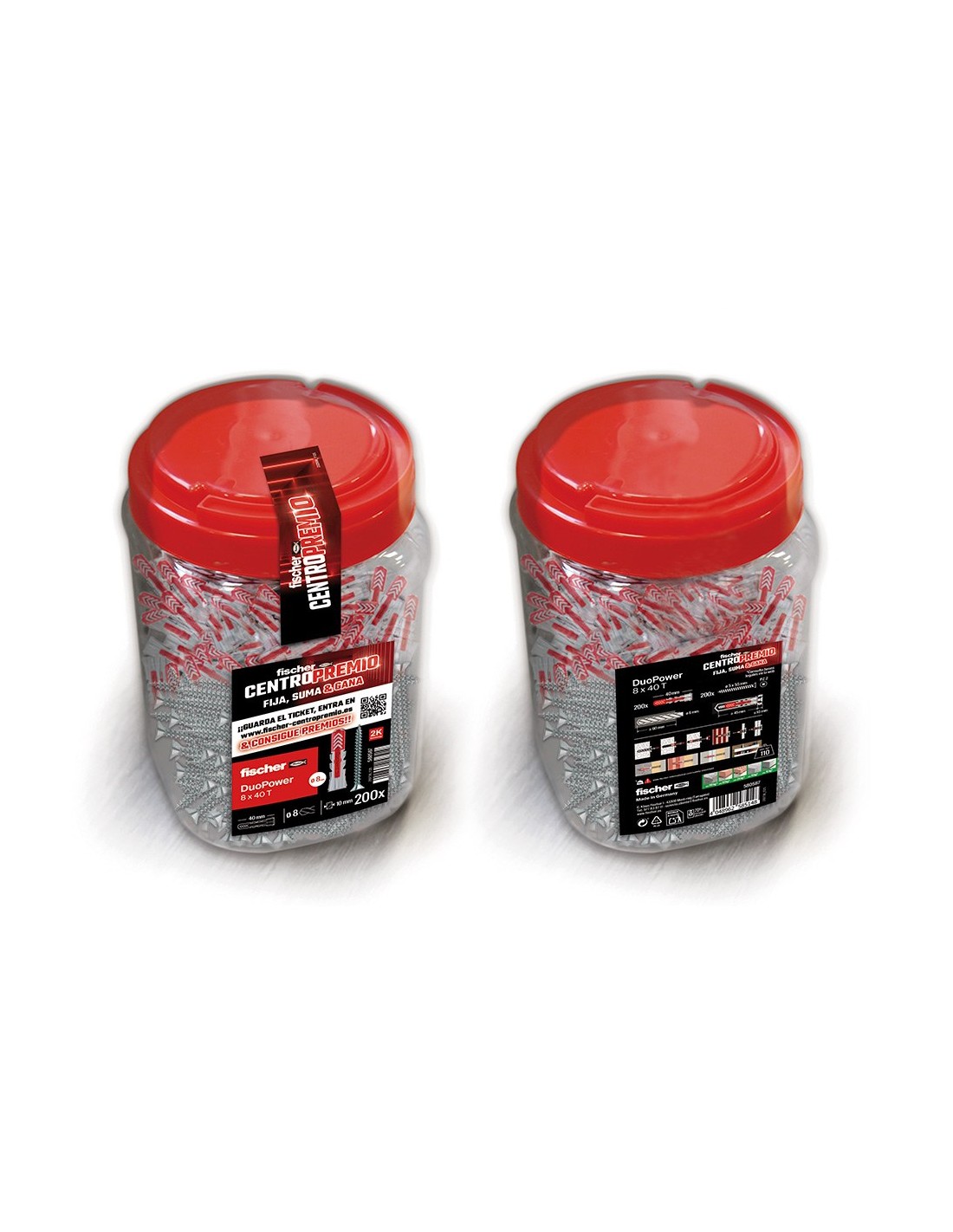 Big box de tacos duopower con tornillo. sistema de fijación completo que incorpora taco duopower 8 x 40 mm de tecnología 2k y tornillo pz2 de ø5 x 5 mm, garantiza máxima seguridad y carga máxima 110 kg, en todo tipo de materiales, gracias a su adaptación automática al soporte, apto para hormigón, ladrillo macizo, ladrillo hueco, cartón-yeso y paneles, solución ideal para profesionales que buscan rapidez, fiabilidad y comodidad en obra, formato big box orientado a campaña centro premio y alto volumen de venta