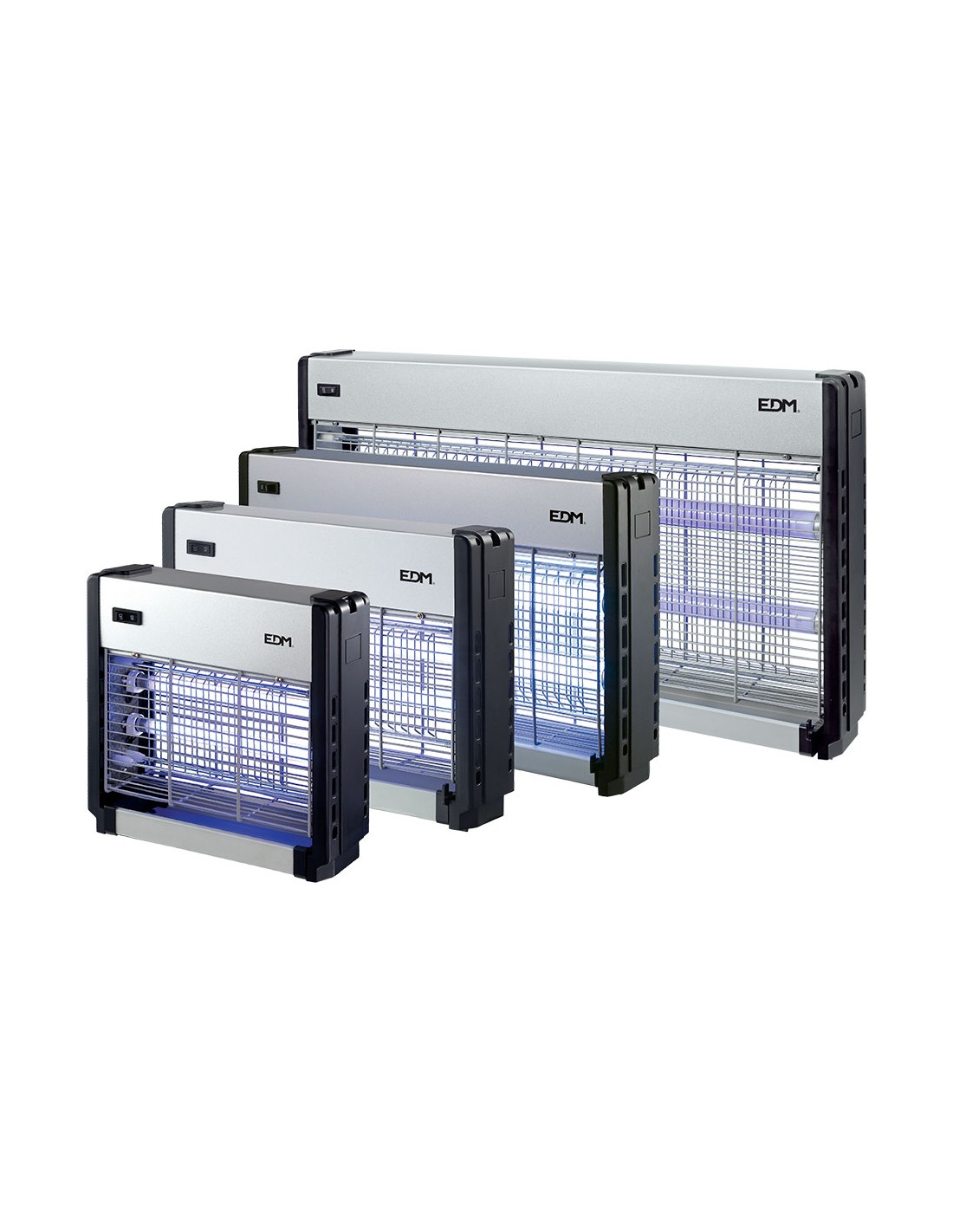 Mata insectos profesional eléctrico, 2 tubos x 6w, para eliminar insectos voladores, con luz actínica. radio de acción 30 m . color cromo/negro, tensión 220 -240v. dimensiones 25,5 x 9 x 26 cm