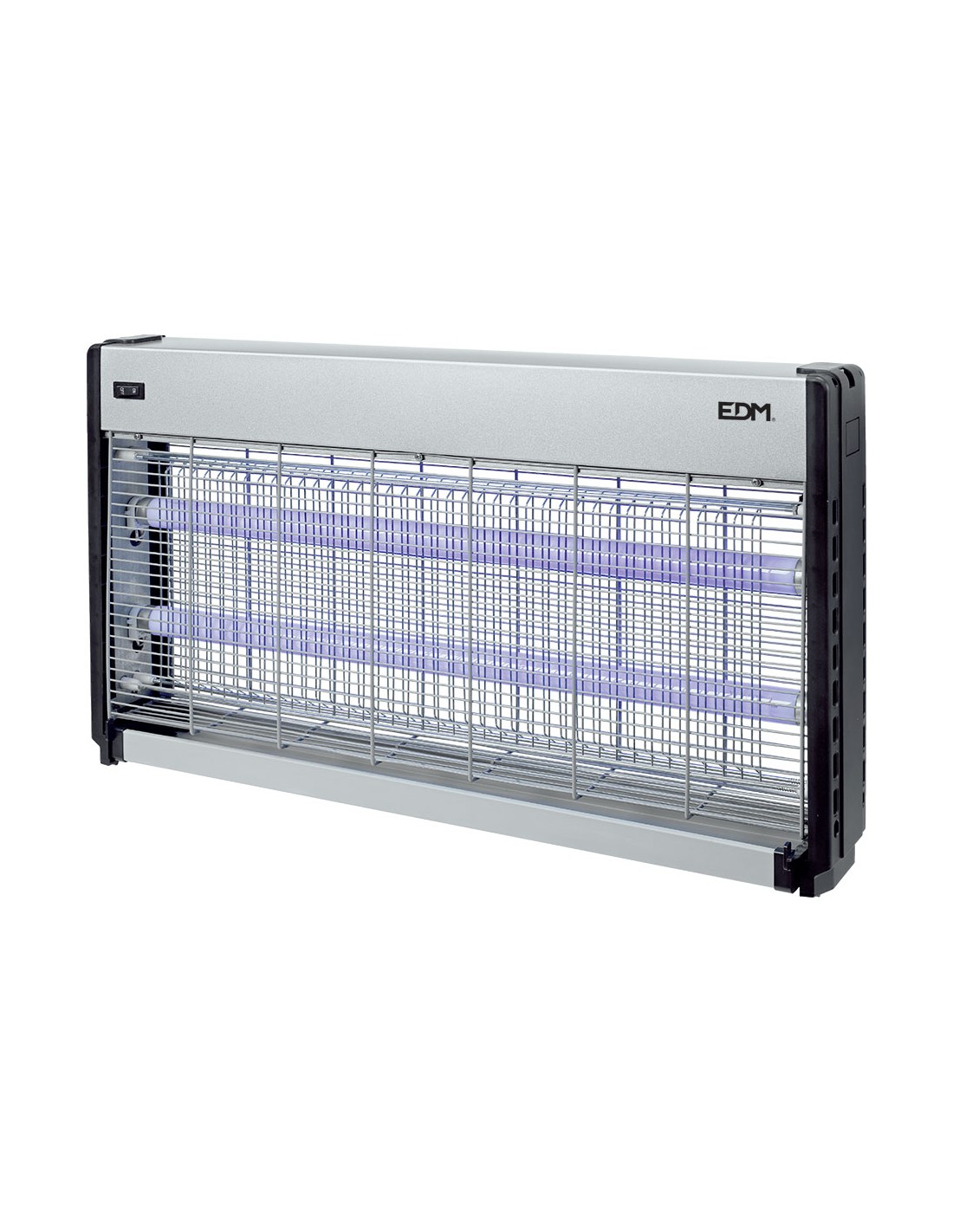 Mata insectos profesional eléctrico, 2 tubos x 20w, para eliminar insectos voladores, con luz actínica. radio de acción 150 m. color cromo/negro, tensión 220 -240v. dimensiones 63,5 x 9 x 36 cm