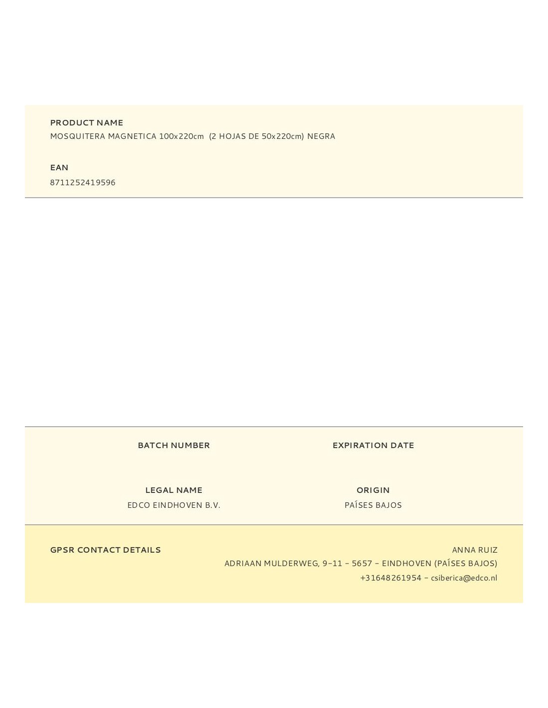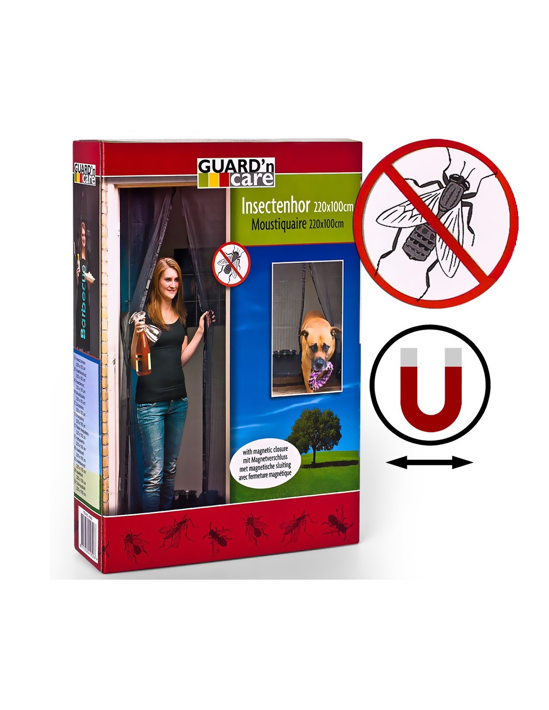 Mosquitera de dos hojas magneticas de 50 x 220 cm, para un hueco máximo de 100 x 220 cm. negra
