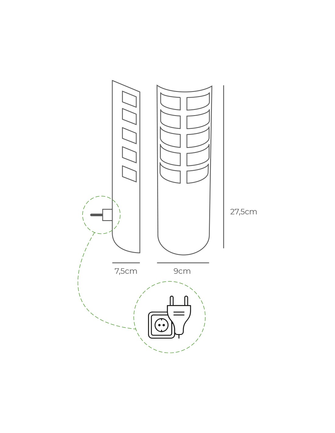Atrapa insectos electrico 9w con placa adhesiva 220-240v-50hz medidas: 9x7,5x27,5cm radio de accion 50m. tension: 220-240v. uso interior. color blanco
