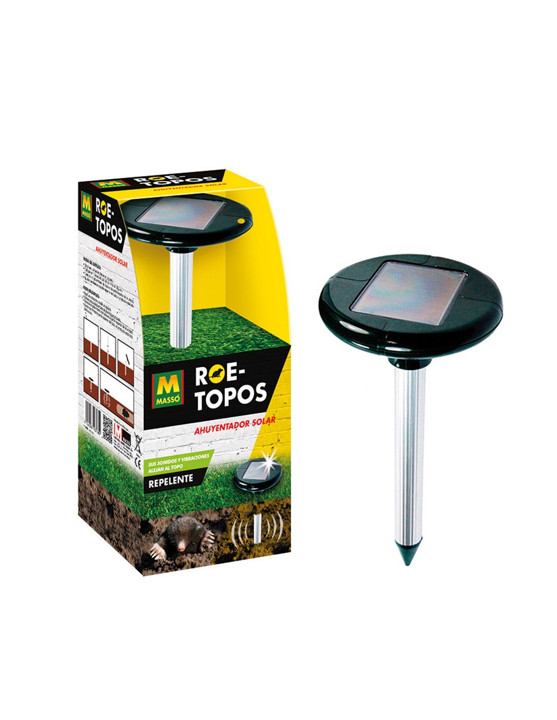 Repelente solar para topos. no daña a los animales. trabaja dia y noche para mantener topos, topillos y otros roedores alejados del jardin. cubre hasta 625m en circulo. una bateria interna se recarga diariamente con la luz solar. emite sonidos de baja frecuencia que hacen vibrar el suelo en un patron circular. emite sonidos y vibraciones cada 40 segundos.se recomienda utilizar dos unidades en areas en las que aparecen con mayor frecuencia. retirar el objeto para los mantenimientos del cesped. 231458 massó