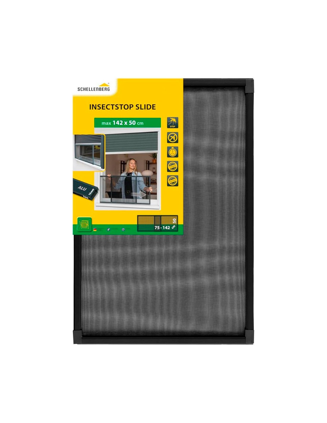 Mosquitera marco extensible para ventanas y persianas antracita 50x75-142cm. montaje terminado, para ventanas y persianas hasta anchura de 142cm. simplemente meter marco extensible dentro de guia de persiana, terminado en 15seg. sin taladrar. marco de aluminio (antracita) con malla de fibra de vidrio de alta calidad (intemperizado) para una optima transparencia. proteccion contra mosquitos y sol a la vez. permite circulacion de aire en habitacion sin insectos.