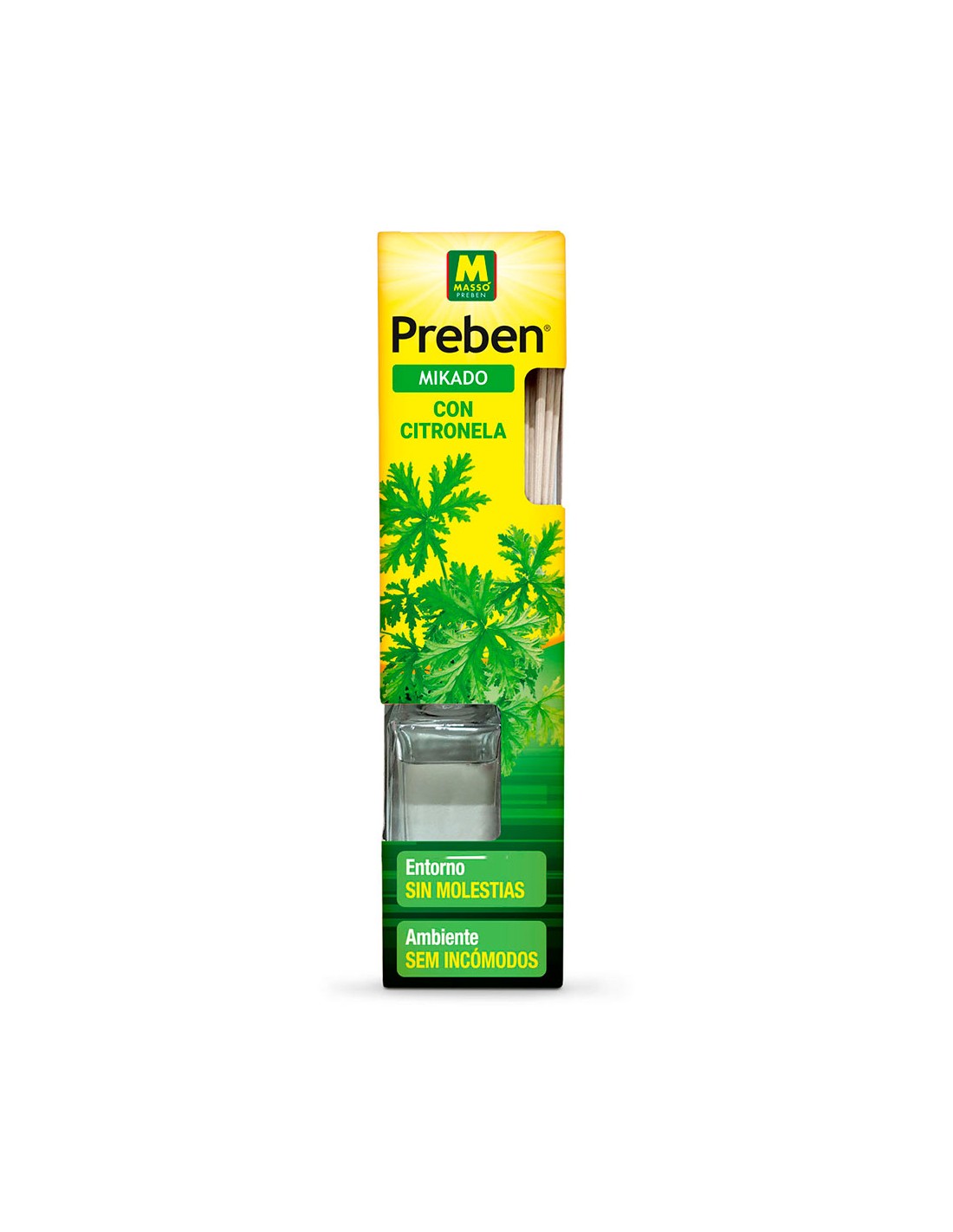 Preben mikado con citronela 45ml. difusores aromatizantes con el poder de las plantas aromaticas para crear un entorno libre de molestias. los palitos difusores perfuman el aire con una fragancia de inspiracion natural. una exclusiva mezcla de hierbas aromaticas como la citronela, hierbabuena y tomillo. preben 231599 massó