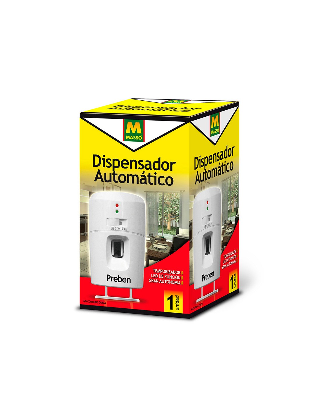 Preben dispensador automatico masso permite eliminar malos olores o dispersar el insecticida en el ambiente dosificando la cantidad a utilizar. temporizador, led de funcion, gran autonomia.