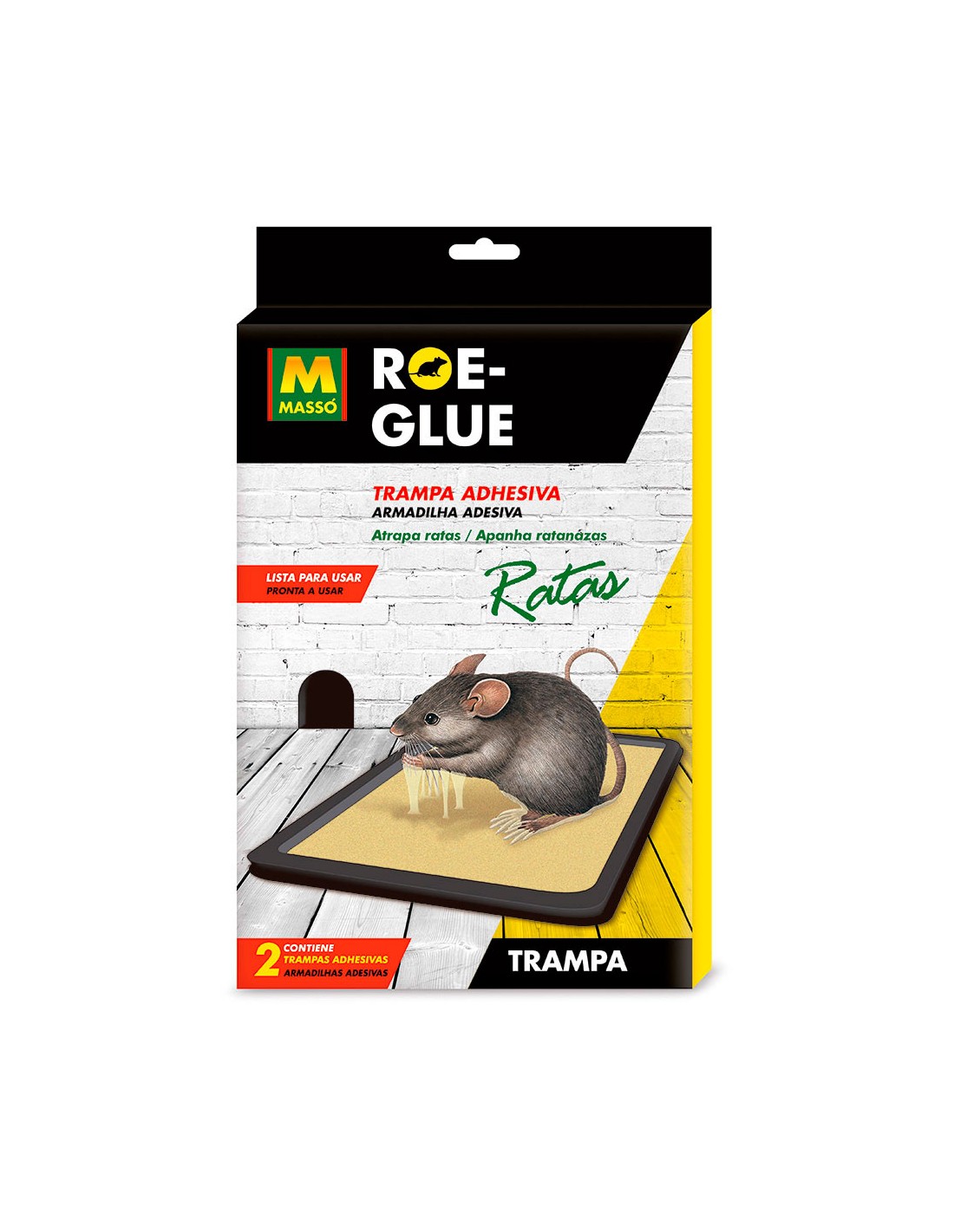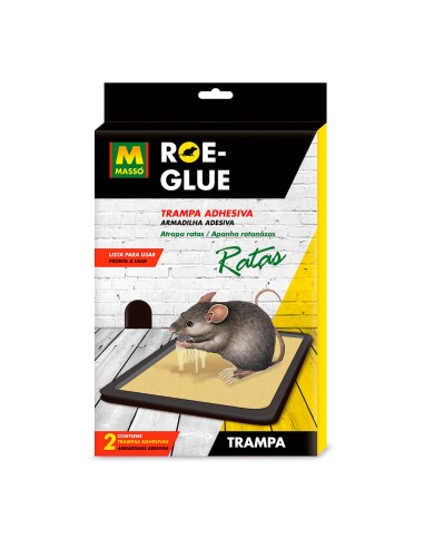 Roe-glue trampa adhesiva para ratas 2 unid. contiene un cebo irresistible para los roedores que se acercan y quedan adheridos a la trampa. sin sustancias venenosas. resistente a la humedad. 231556 massó