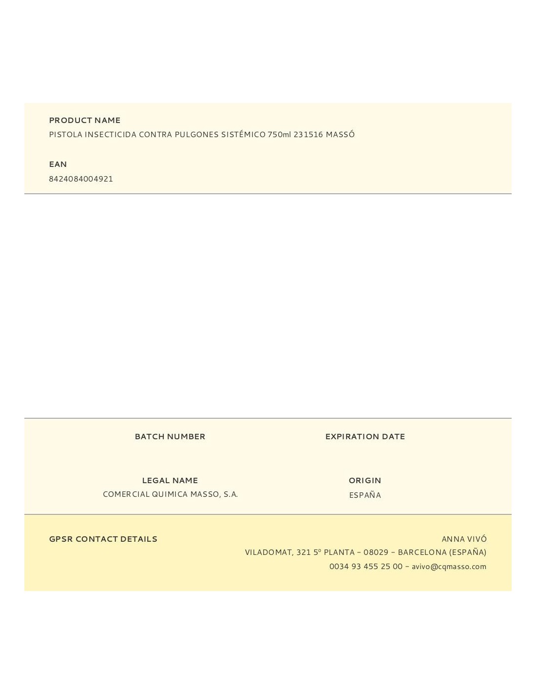 Pistola insecticida contra pulgones sistémico 750ml insecticida para aplicar directamente en pulverización. elimina los pulgones en 24 h y previene su aparición. 231516 massó
