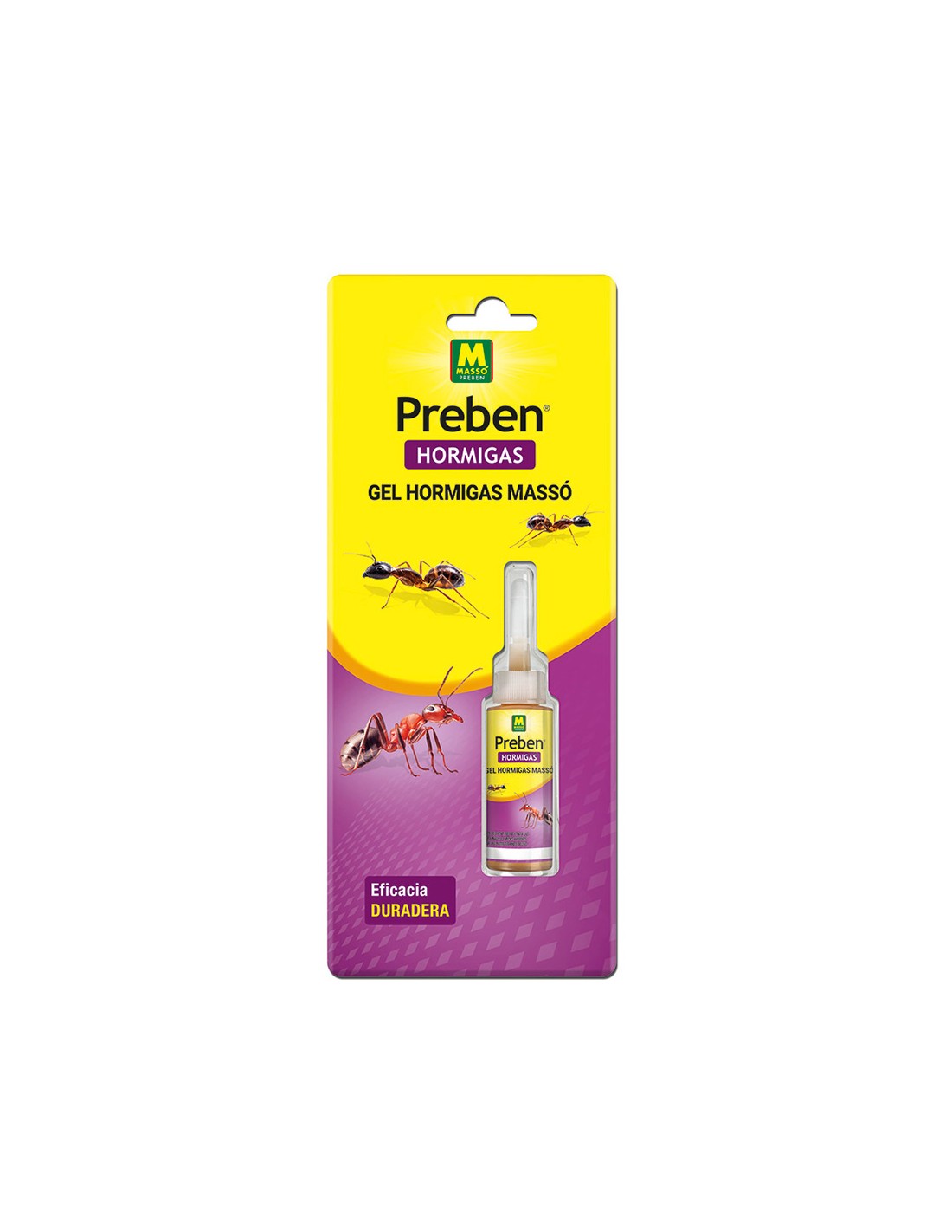 Gel jeringa antihormigas 25g. preben. elimina las principales especies de hormigas comunes y tropicales y sus nidos gracias al efecto dominó. cebo muy sabroso, nutritivo y azucarado que provoca una ingesta rápida con una mayor mortalidad. es incoloro,inodoro y no mancha. eficacia hasta 3 meses después de su aplicación. massó