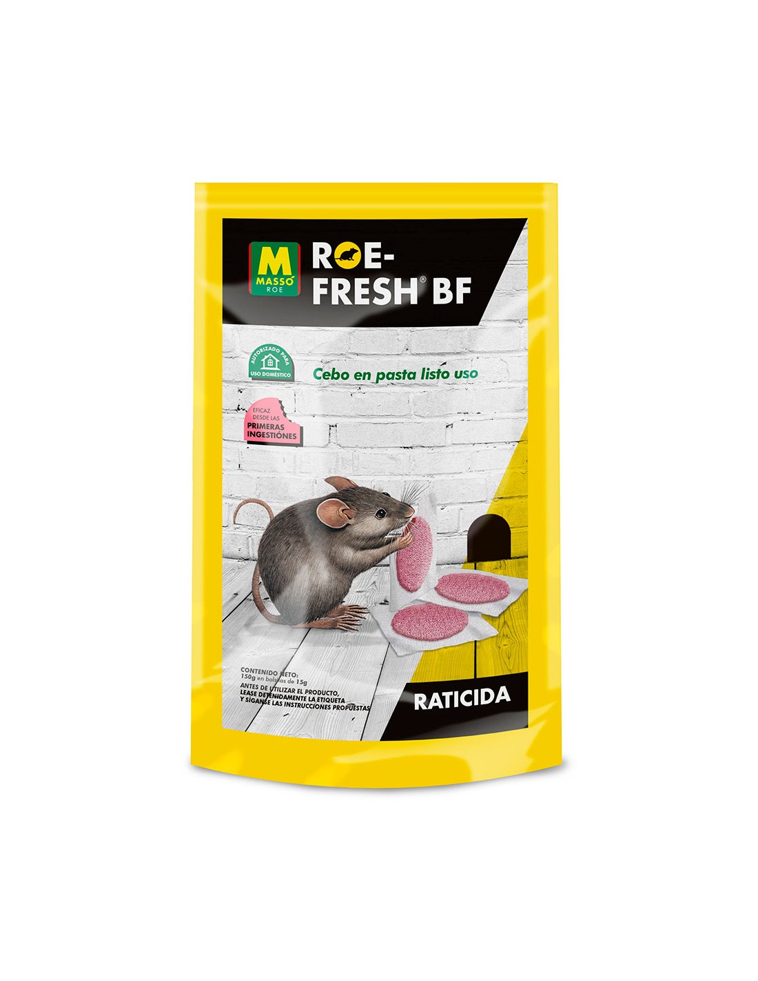 Roe-fresh 150g 231707 cebo en pasta fresca listo para su uso. eficaz para el control de ratas y ratones. rodenticida anticooagulante. uso exterior e interior. monodosis 15g. larga duración. activo desde las primeras ingestiones. utilice los biocidas de forma segura. lea siempre la etiqueta y la informacion sobre el biocida antes de usarlo""