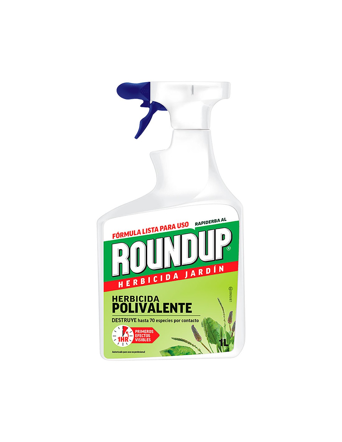 Garden pistola roundup 1 l. herbicida eco. herbicida foliar no selectivo. actua por contacto. para controlar las malezas anuales y perennes en areas no cultivadas (patios, aceras, caminos y alrededores de edificios). ideal para eliminar hasta 70 especies de malas hierbas, tambien elimina el musgo. permite replantar o sembrar 24 horas despues de la aplicacion.