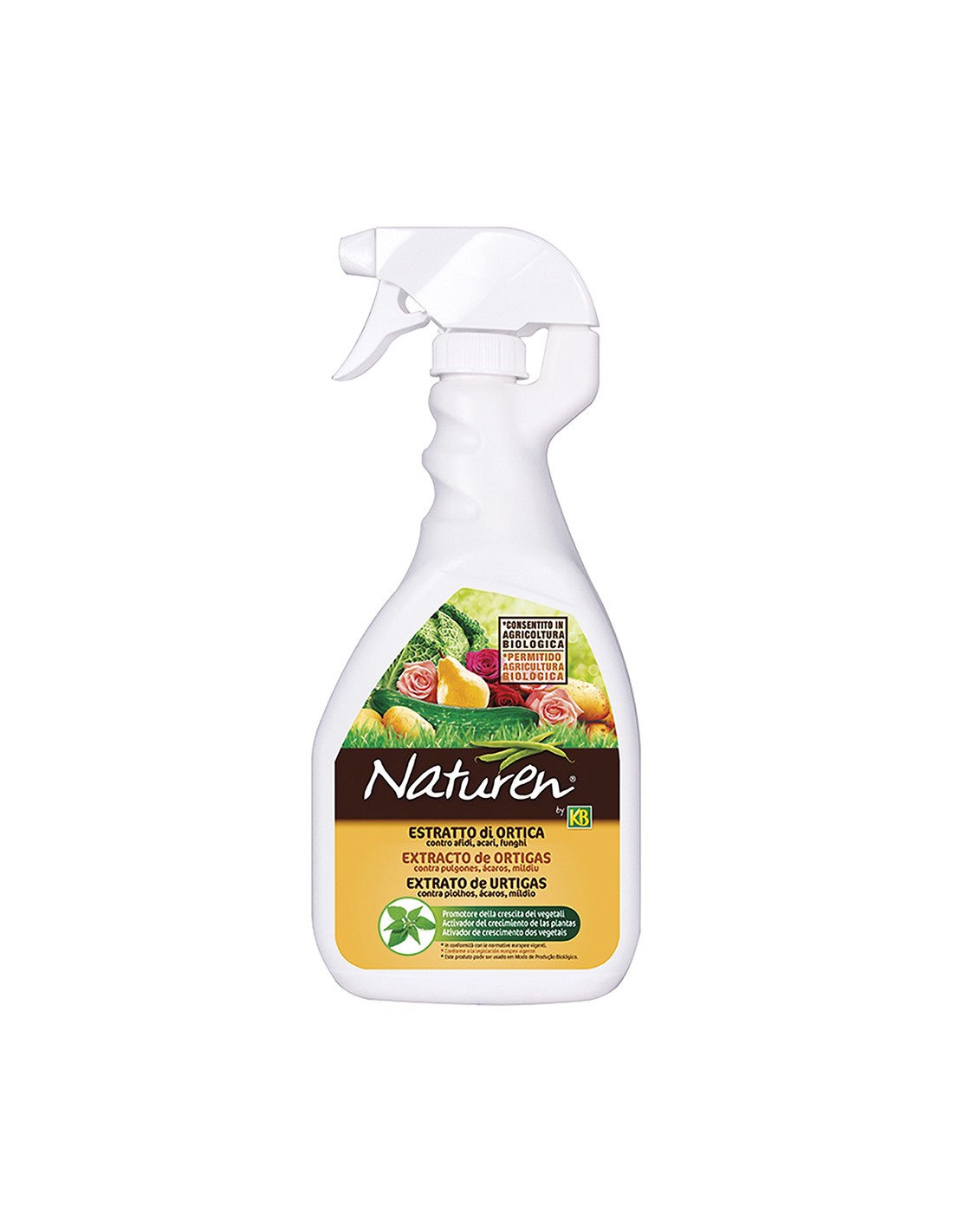 Kb naturen pistola extracto de ortigas 750ml. preparado natural activador del crecimiento y protector de las plantas frente a las agresiones externas: mildiu, pulgones, ácaros. sustancia base autorizada según reglamento 1107/2009 y el documento sanco/11809/2016-rev 0.1. utilizable en agricultura ecológica.