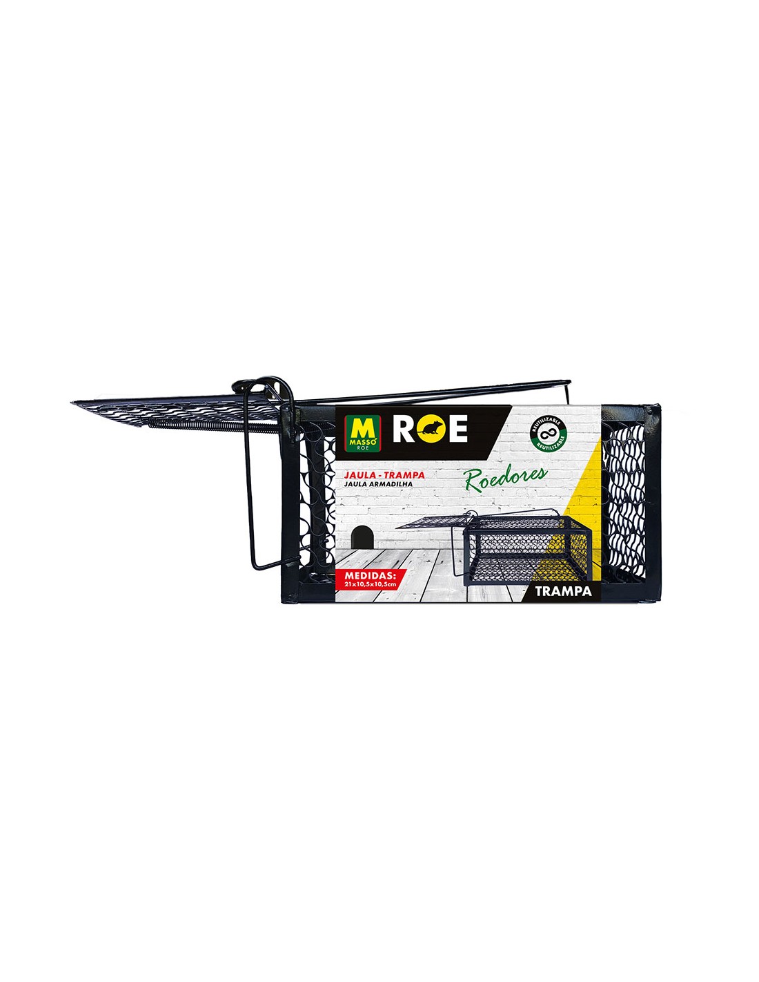 Jaula/trampa para roedores (20x10,5x10,5cm) 231703 masso para capturar todo tipo de roedores sin matarlos ni dañarlos. adecuada para uso en interiores y exteriores. fácil de montar y segura de usar. reutilizable. malla de chapa perforada