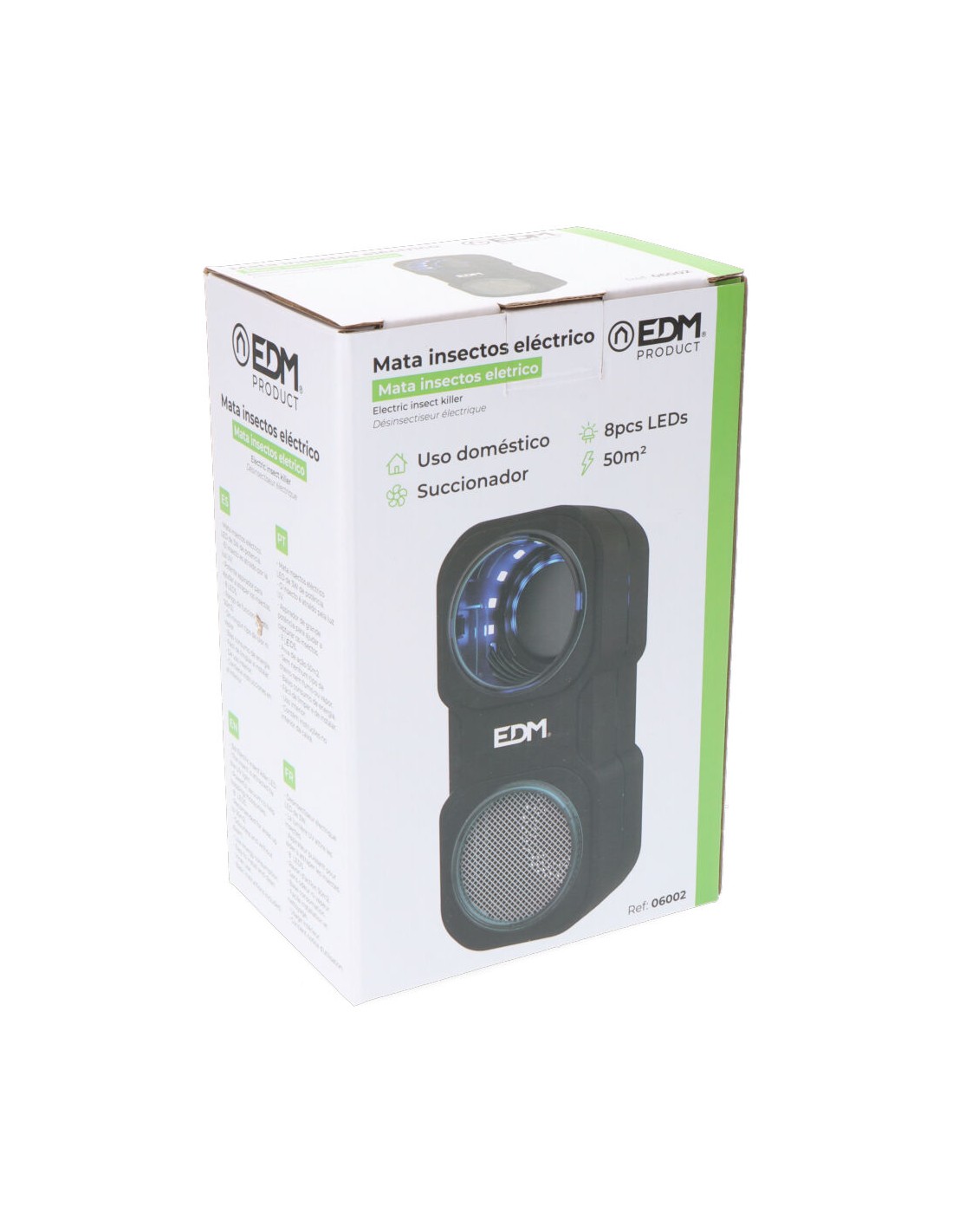 Mini atrapa insectos led 50m edm. atrae a los mosquitos de forma eficiente. incluye un ventilador incorporado que succiona el mosquito. incluye trampa recolectora desmontable para facilitar la limpieza. ideal para dormitorios, salas estar... dimentiones: 8x10,5x18,2cm
