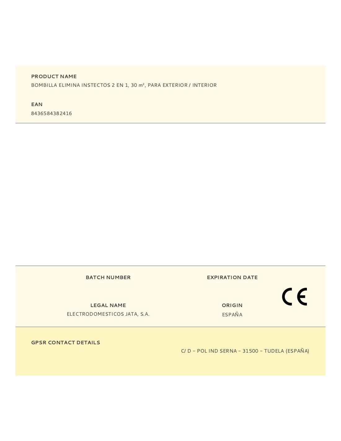 Elimina insectos / bombilla área de acción 30 m, 230 v, 5 w, ip20. para exterior / interior. elimina todo tipo de insectos mediante descarga eléctrica, silencioso. con 4 bombillas de led ultravioleta para atraerlos. bombilla con 12 leds e iluminación máxima 380 lm. respetuoso con el medio ambiente, sin emisión de agentes contaminantes. dimensiones ø78 mm x 155 mm