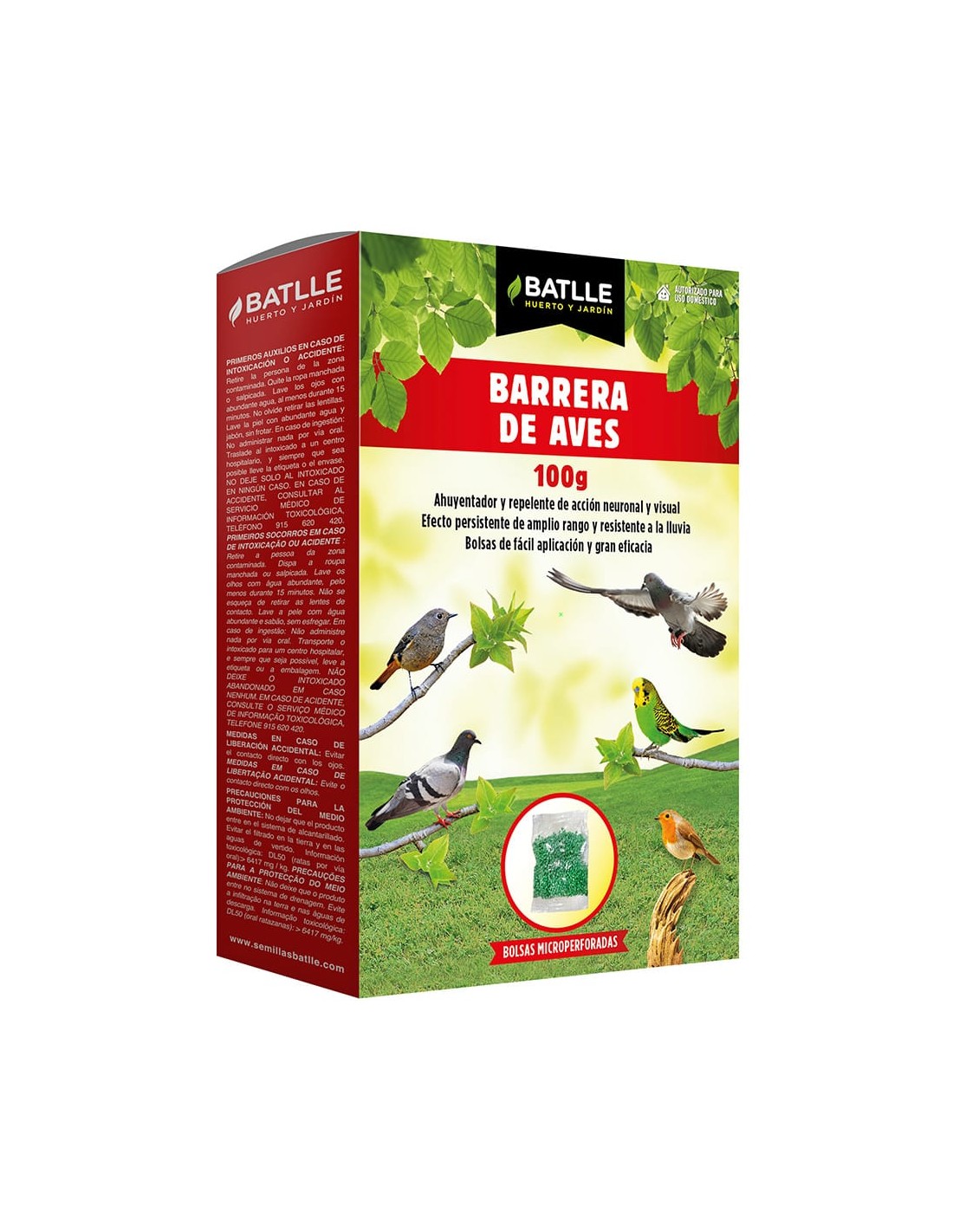 Ahuyentador y repelente de acción neuronal y visual. combinación de extractos y esencias naturales con presentación en bolsas microperforadas con 25 gr de granulado. efecto persistente de amplio rango y resistente a la lluvia