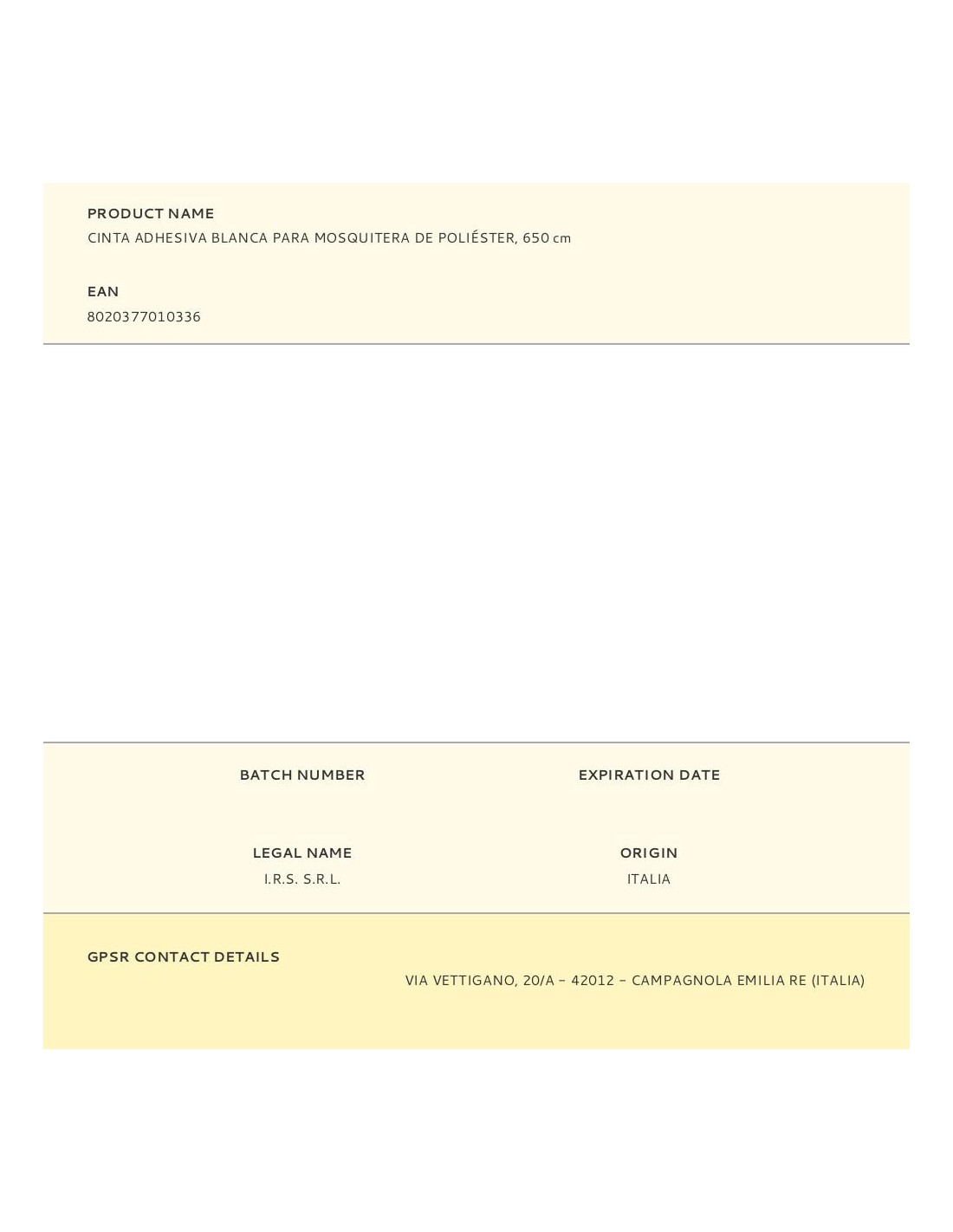 Cinta adhesiva de fijación para malla mosquitera de poliéster, blanca, 650 cm