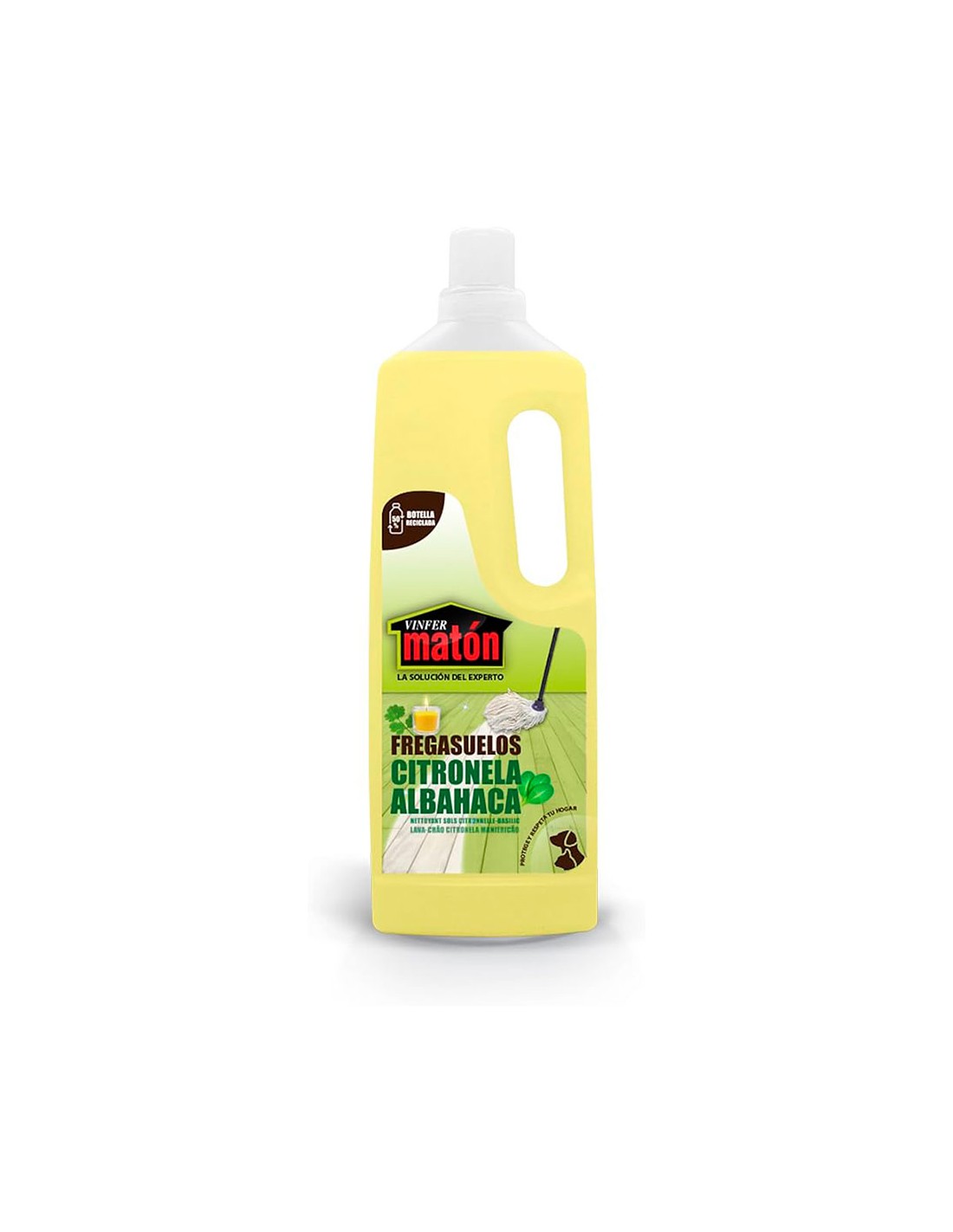 Fregasuelos insecticida 1 l, con aroma a citronela y albahaca. limpia y perfuma todo tipo de suelos, dejando un ambiente fresco mientras ayuda a repeler insectos de forma eficaz