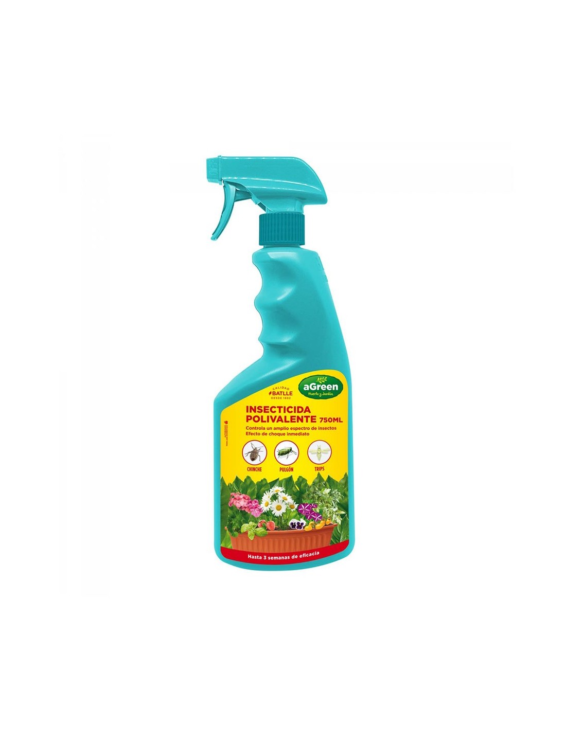 Insecticida polivalente pulverizador. ofrece efecto de choque inmediato y una eficacia de hasta 3 semanas contra plagas. autorizado para jardinería exterior doméstica. actúa contra: pulgón, chinche, trips y otros insectos comunes, 750 ml