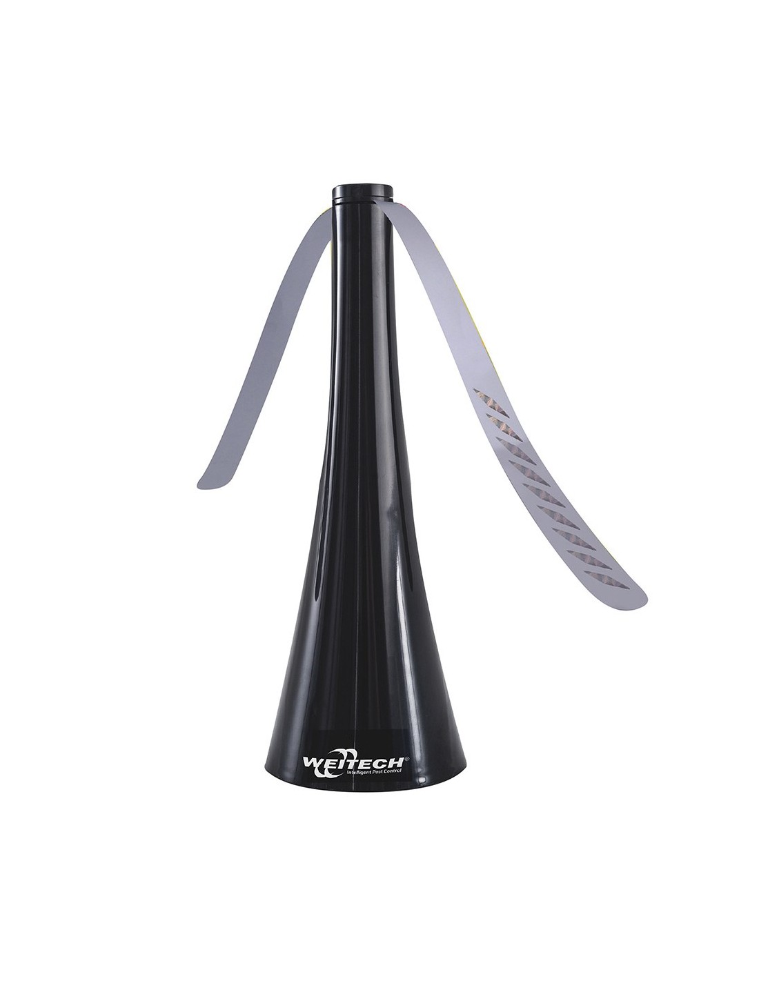 Ahuyentador de moscas. dispone de 2 aspas blandas giratorias que se detienen al contacto para una seguridad total. su movimiento constante desorienta y aleja a los insectos voladores. incluye gancho inferior para colgar. funciona con 2 pilas aa (no incluidas). dimensiones: ø9 x 25,6 cm